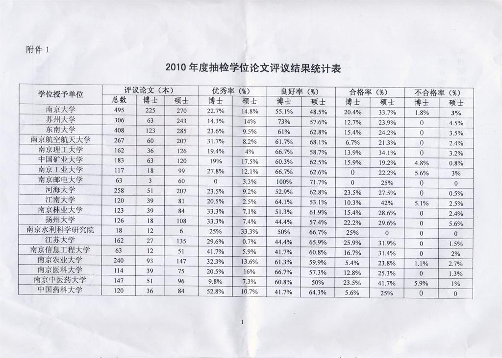 关于2010年度江苏省研究生学位论文抽检不合格论文处理意见的通知