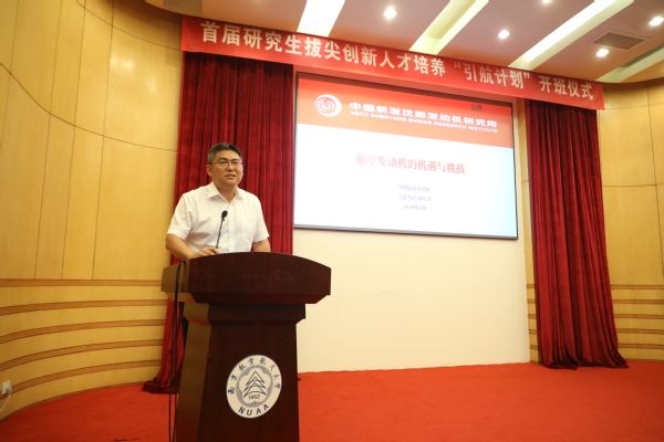 6月23日,南京航空航天大学首届研究生拔尖创新人才培养“引航计划”开班仪式在明故宫校区科学馆报告厅隆重举行。中国工程院院士、中国商用飞机有限责任公司首席科学家、C919大飞机总设计师吴光辉,中国商用飞机有限责任公司原副总经理、专家工作组组长史坚忠,中国航发动力所党委书记徐庆泽,校长聂宏,校党委副书记陶勇,校党委常委、宣传部部长王晖,校长助理、党政办主任刘宇雷出席开班仪式。参加此次活动的还有各职能部门负责同志,各学院分管研究生副院长、副书记,导师代表和首届引航计划班全体博士研究生。仪式由副校长、研究生院院长施大宁主持。