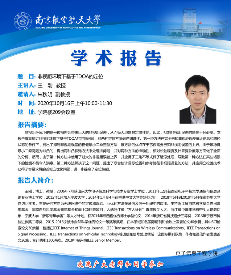 报告地点:电子信息工程学院209会议室