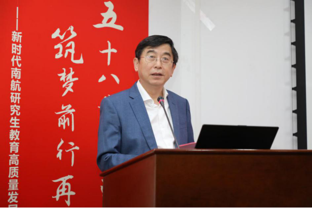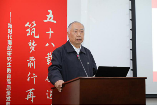 朱剑英、聂宏共同为《南京航空航天大学学位与研究生教育发展历程》报告揭幕。《南京航空航天大学学位与研究生教育发展历程》报告分三个阶段,从授权学科、导师队伍、建立研究生院等多个专题全面梳理总结了学校学位与研究生教育五十八年的发展历史、改革举措及建设成果。