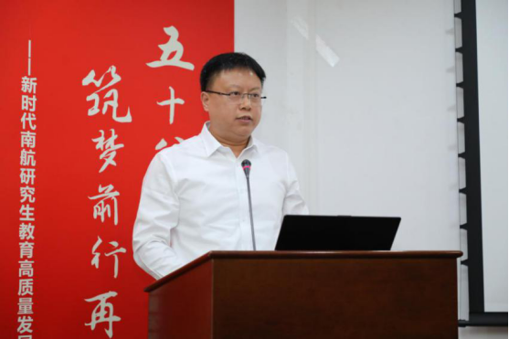单忠德代表学校总结讲话,他首先对为研究生院创建发展做出突出贡献的老领导、老前辈们、校友、社会各界人士、全体研究生导师和教育管理人员表示衷心的感谢,对南航研究生院建院二十周年表示祝贺。他表示此次新时代研究生教育高质量发展启动会,既是学校党委深入贯彻落实习近平总书记关于研究生教育工作重要指示精神的重要环节,也是进一步推进全国、全省研究生教育会议精神在学校落实落细、落地见效的关键一步,正式吹响了南航研究生教育工作在新时代改革赋能、高质量发展的号角。他对加快新时代南航研究生教育改革提出四点希望:一是坚持立德树人,把牢正确政治方向;二是坚持服务需求,强化特色示范效应;三是坚持质量为上,提升内涵发展水平;四是坚持创新引领,永葆追求卓越动力。他从六个方面介绍了新时代研究生教育改革的重点任务,即服务大局,优化资源配置;深化改革,创新培养模式;完善机制,严格质量管理;院为主体,提高成果质量;提升能力,强化队伍建设;形成合力,健全育人体系。最后,他强调要坚持以习近平总书记对研究生教育工作的重要指示精神为根本遵循和行动指南,在新时代研究生教育发展征程中展现南航人的使命担当,奋力书写研究生教育工作新篇章,为“两个强国”建设、实现中华民族复兴的伟大中国梦作出更大贡献。