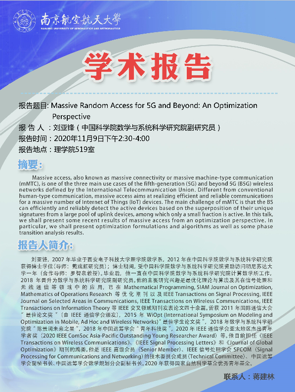报告题目:Massive Random Access for 5G and Beyond: An Optimization Perspective