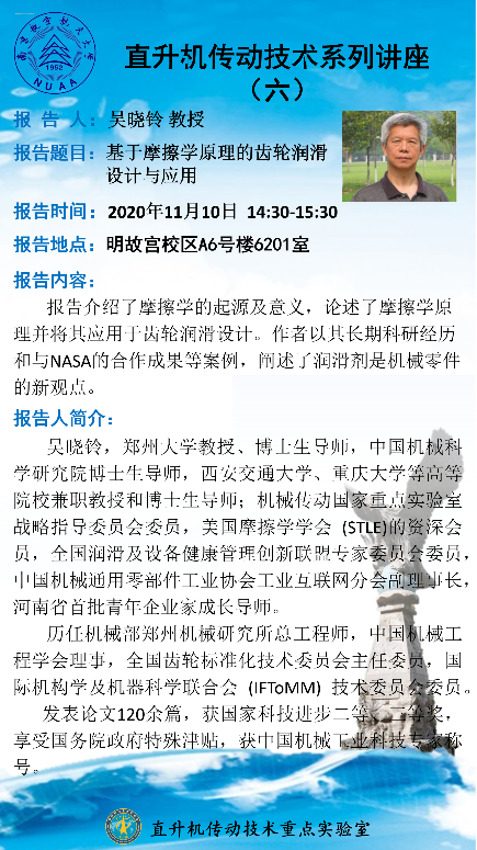报告题目:直升机传动技术系列讲座(六)——基于摩擦学原理的齿轮润滑设计与应用