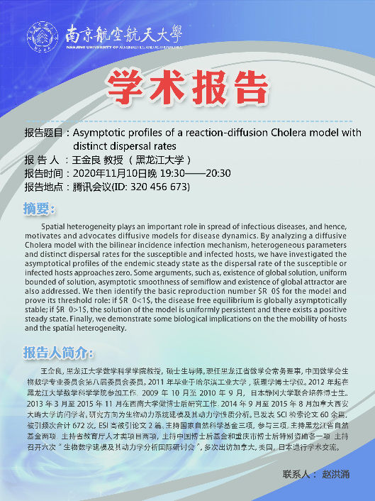 报告题目:Asymptotic profiles of a reaction-diffusion Cholera model with distinct dispersal rates