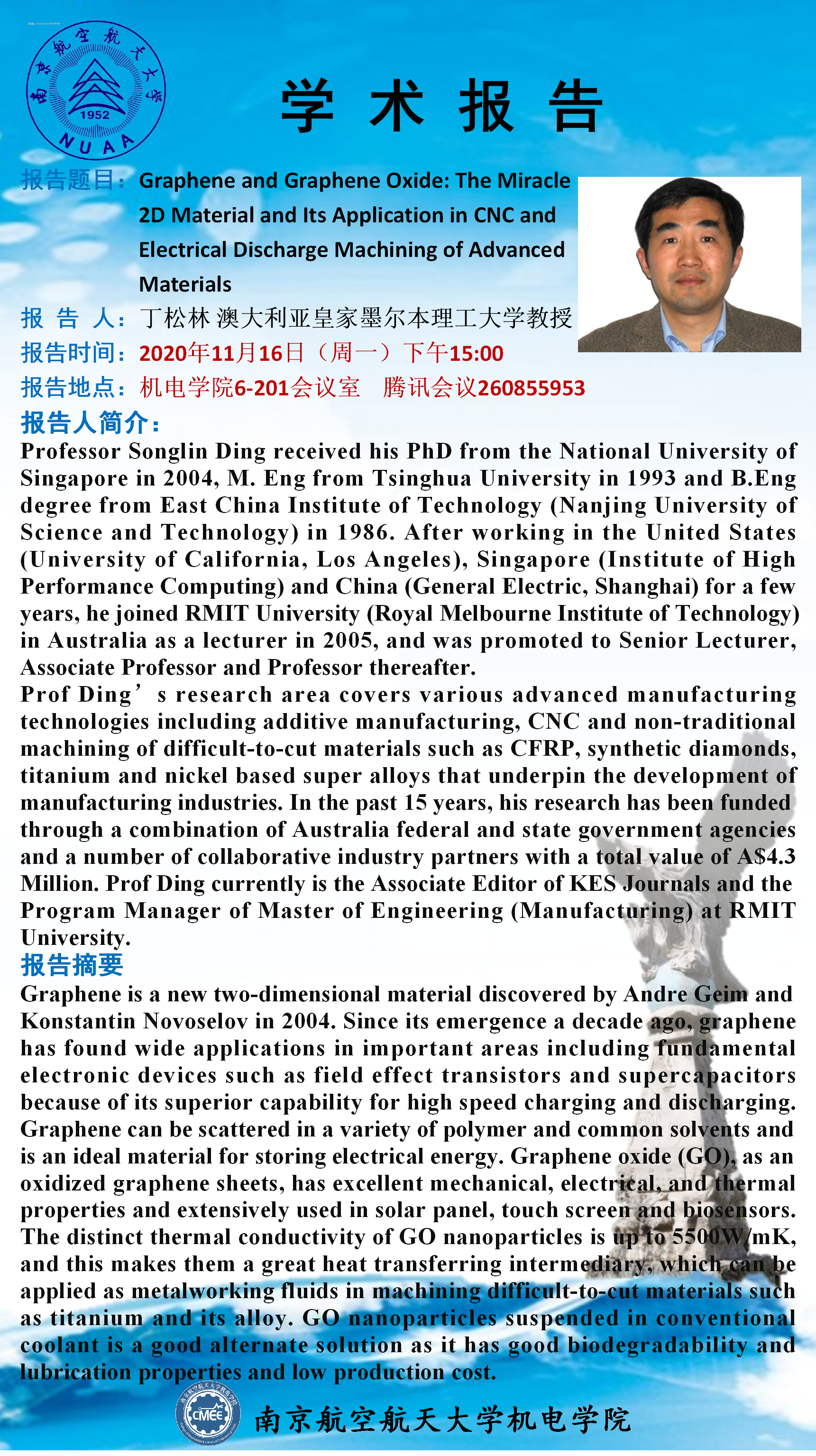 报告题目:Graphene and Graphene Oxide:The Miracle 2D Material and Its Application in CNC and Electrical Discharge Machining of Advanced Materials