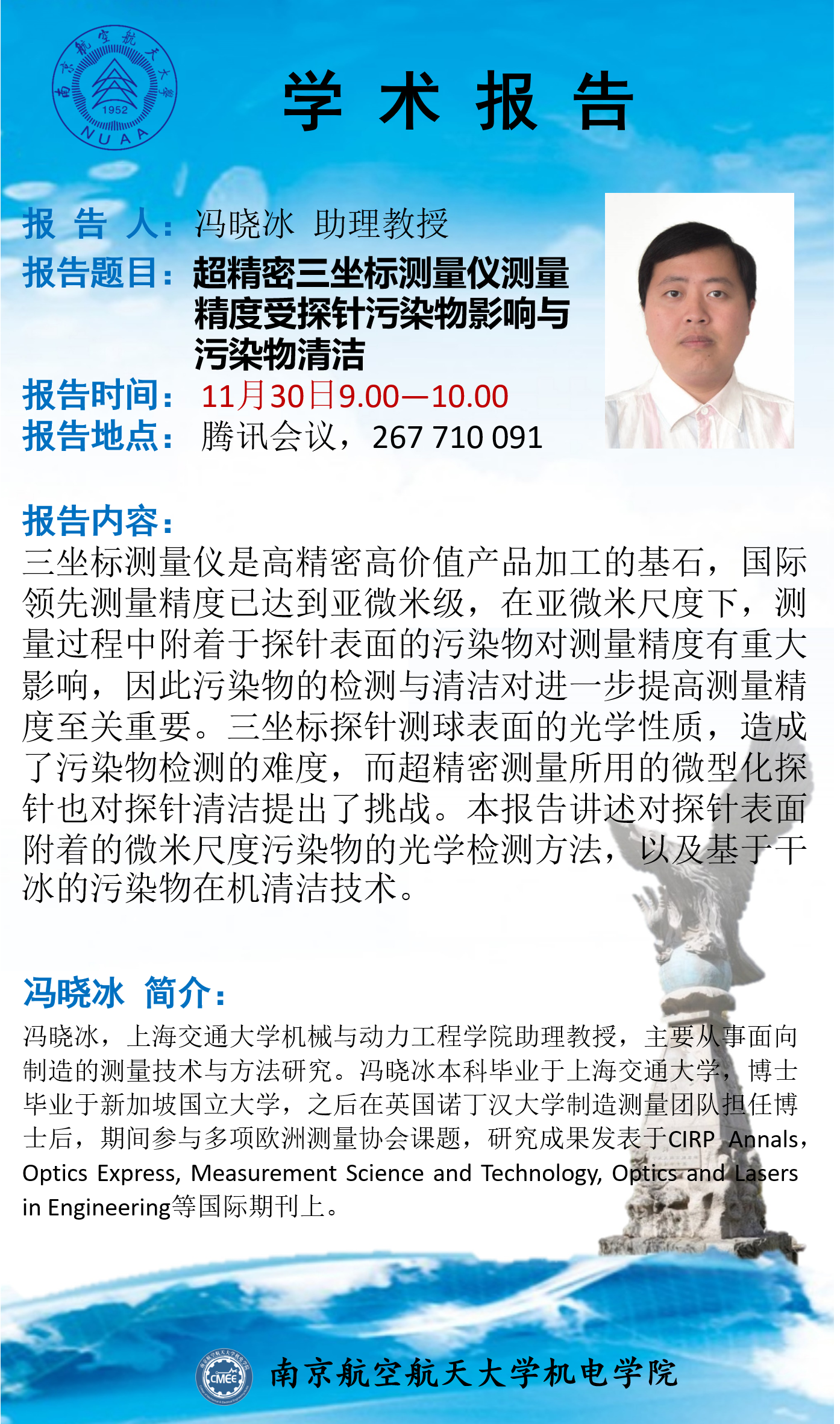 报告地点:机电学院6-201会议室 腾讯会议 ID:260855953