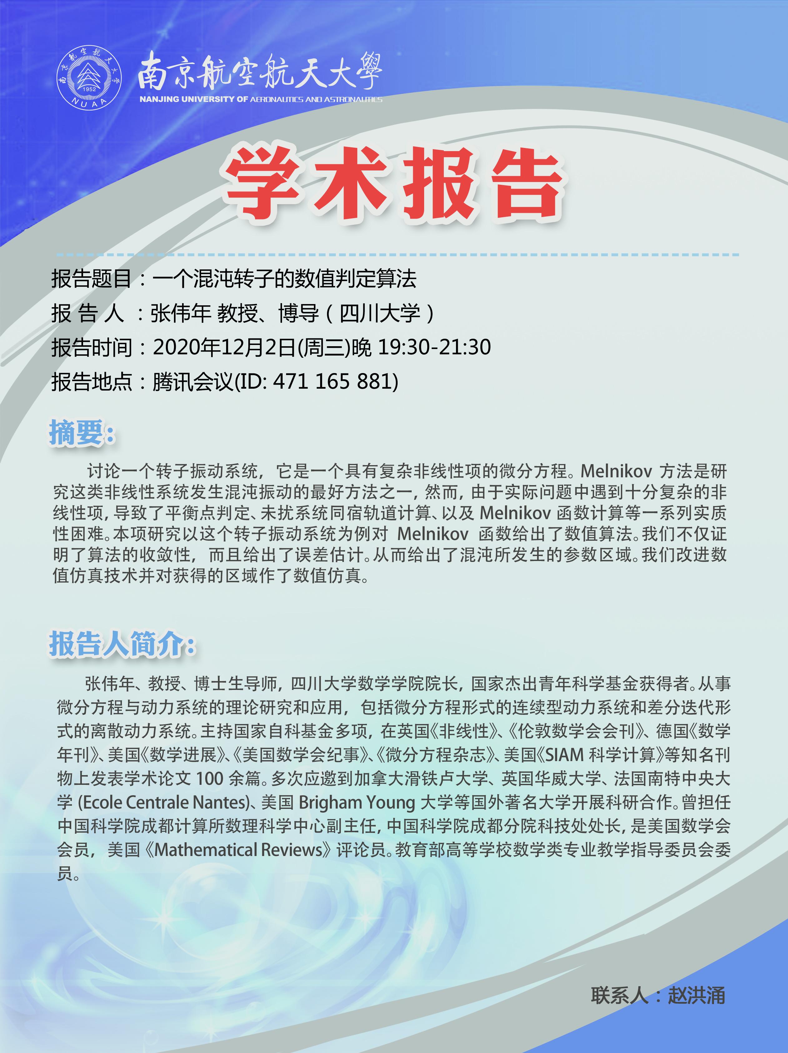 报告人:张伟年 教授(四川大学)
