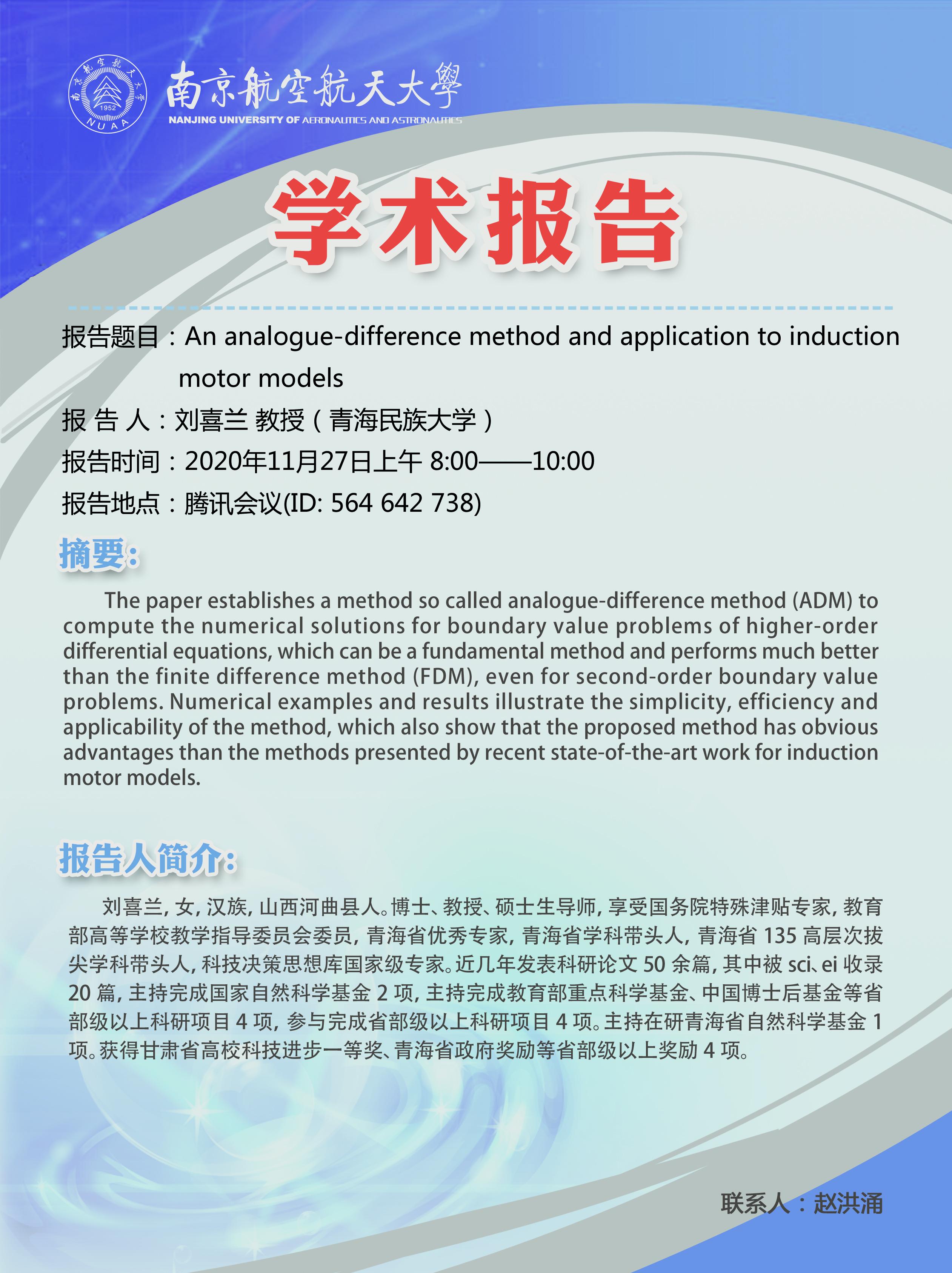 报告题目:An analogue-difference method and application to induction motor models