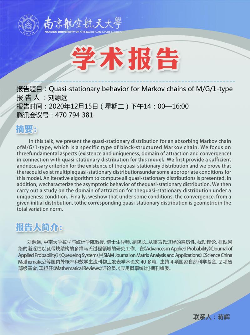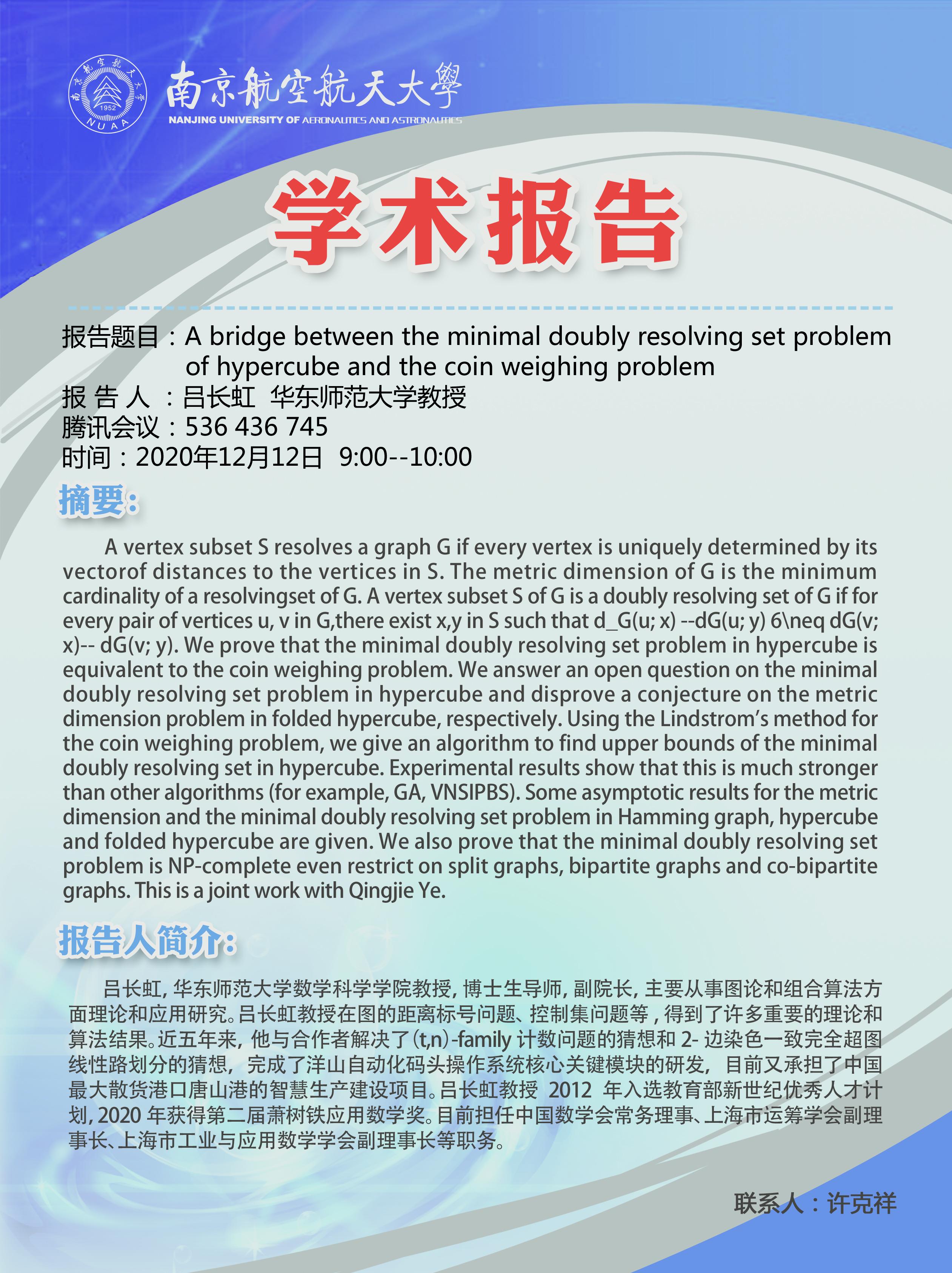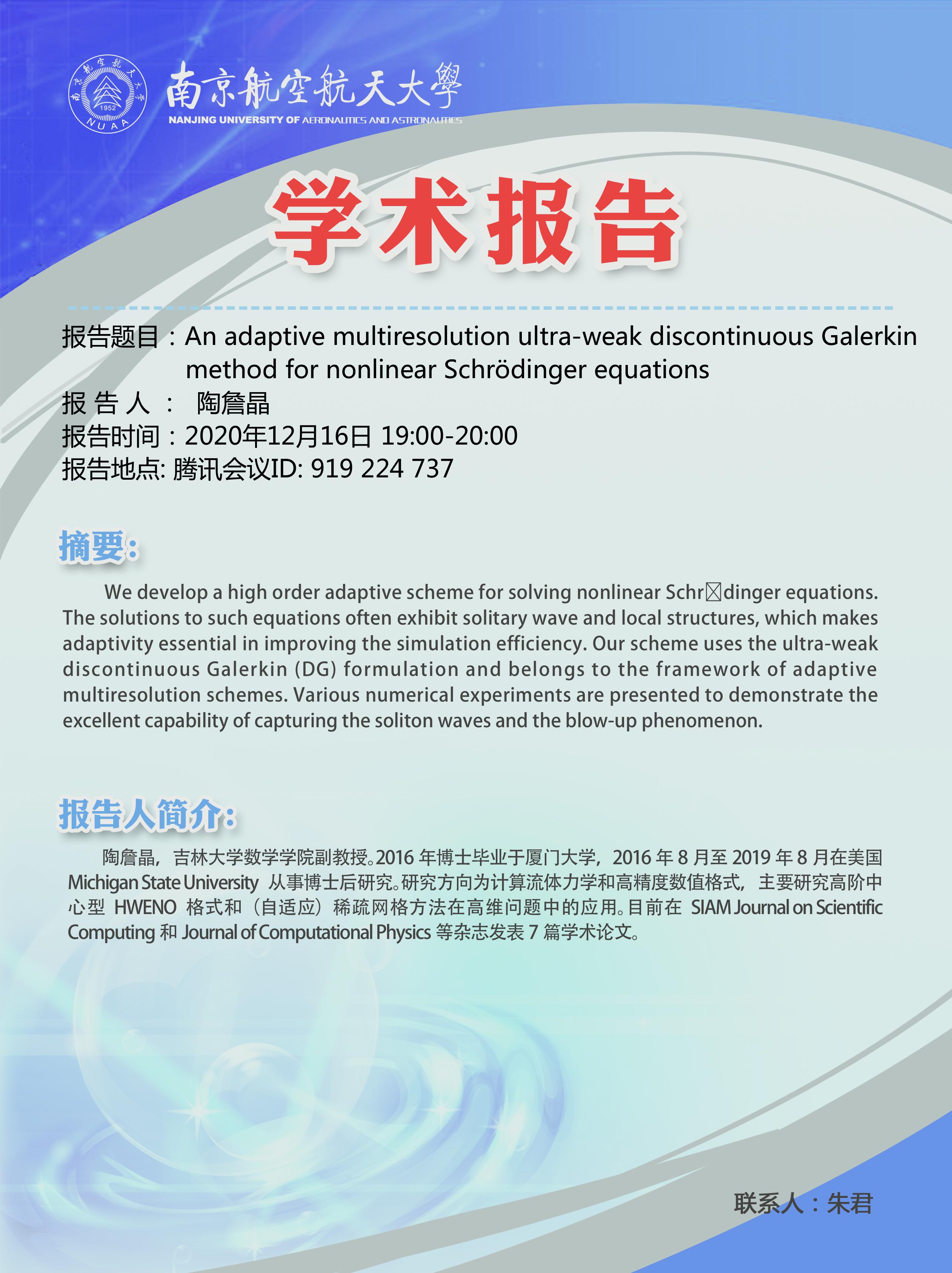 报告地点:ZOOM:763 086 2328; 密码:nuaacem