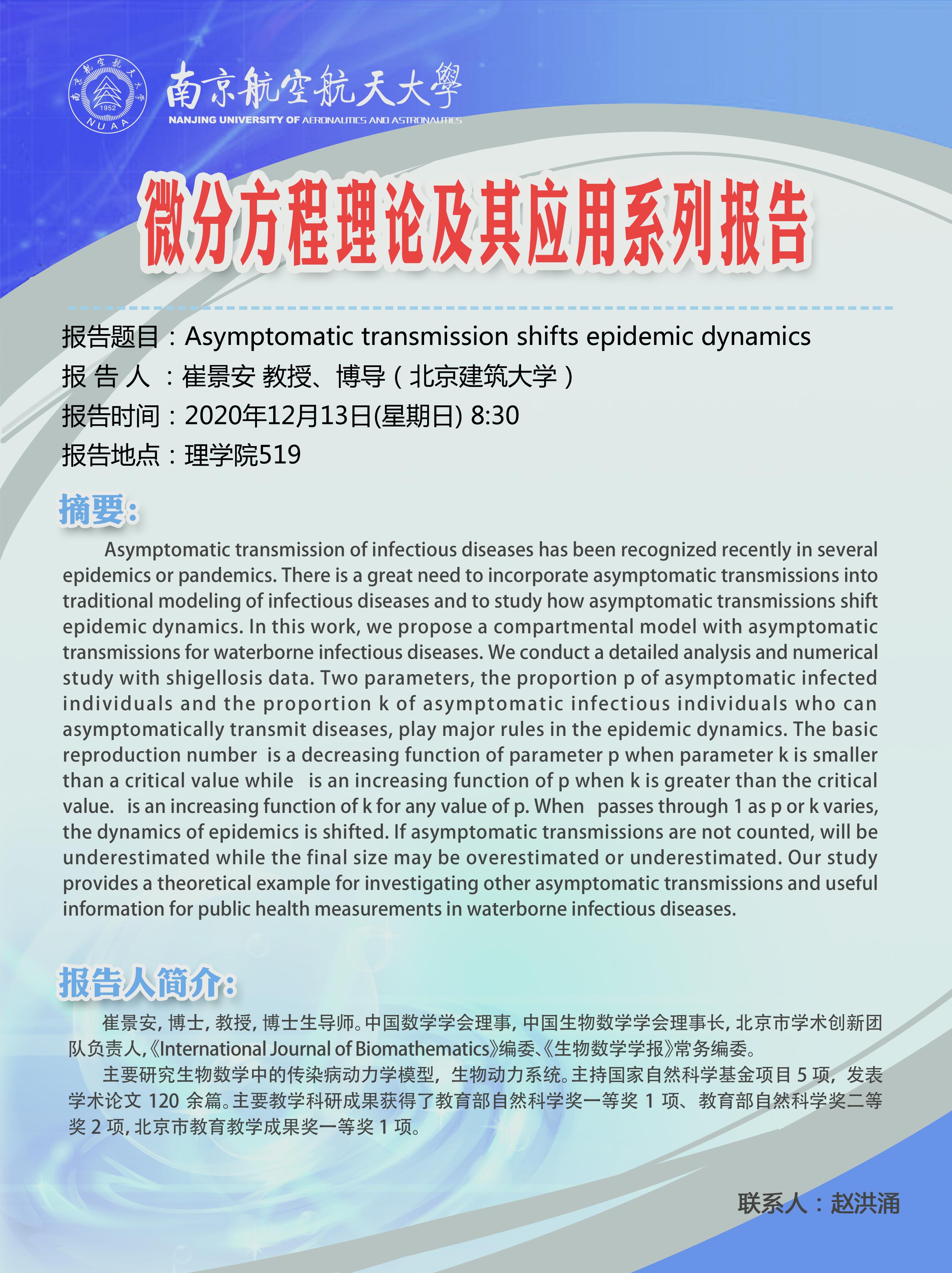 报告题目:Asymptomaitc transmission shifts epidemic dynamics