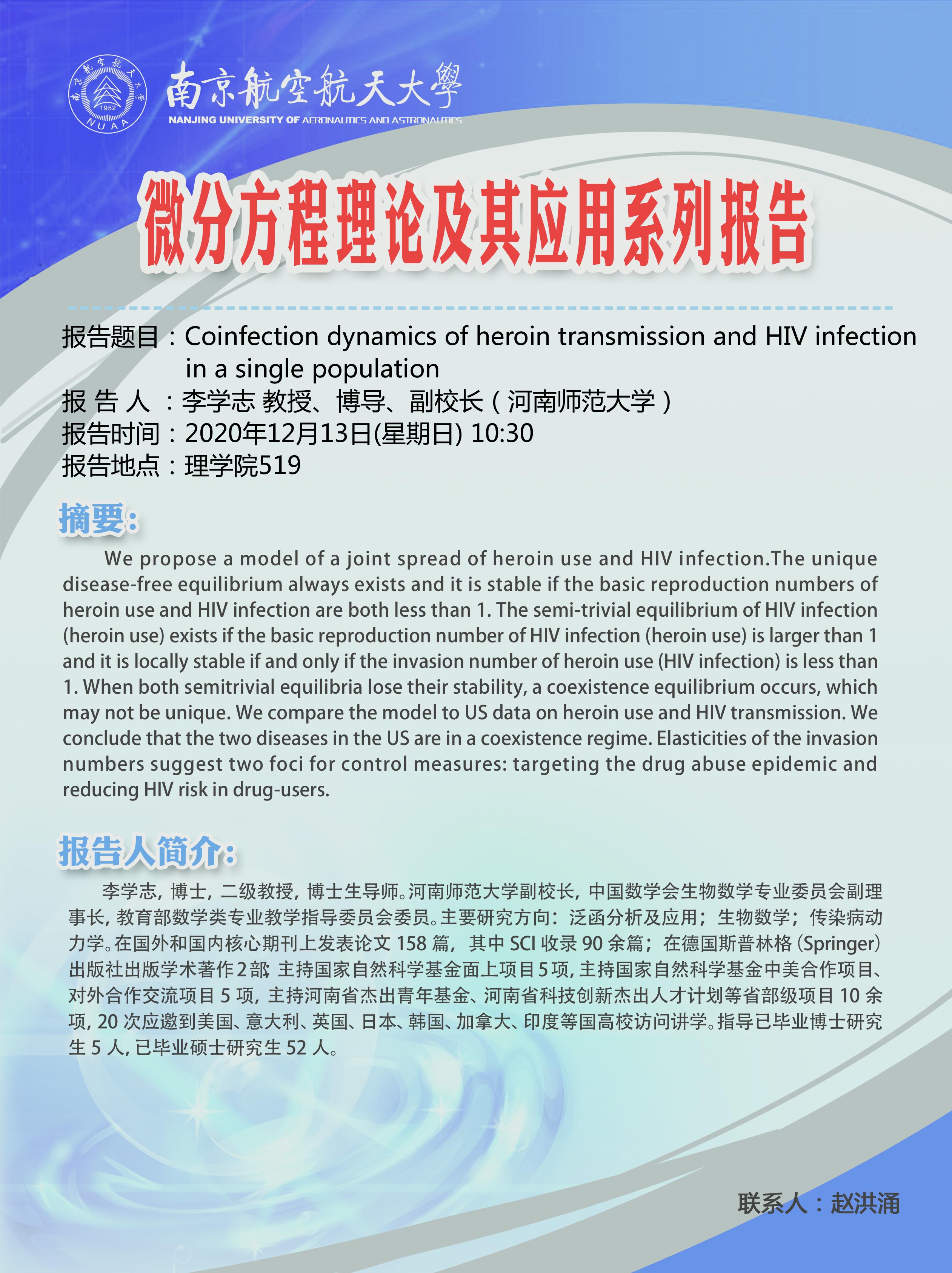 报告题目:Coinfection dynamics of heroin transmission and HIV infection on a single population