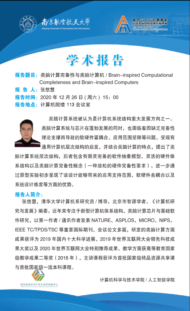 报告题目:类脑计算完备性与类脑计算机 / Brain-inspired Computational Completeness and Brain-inspired Computers