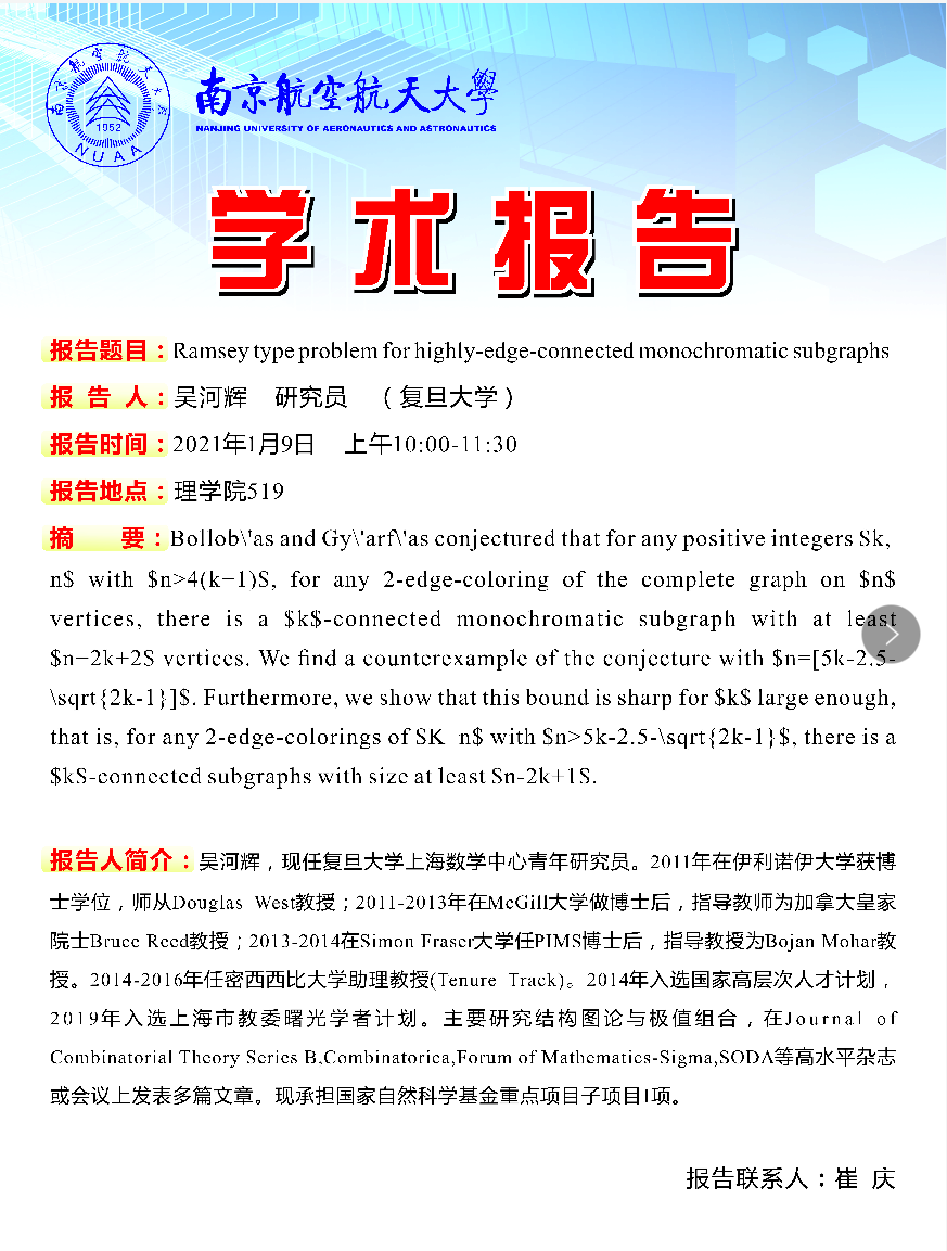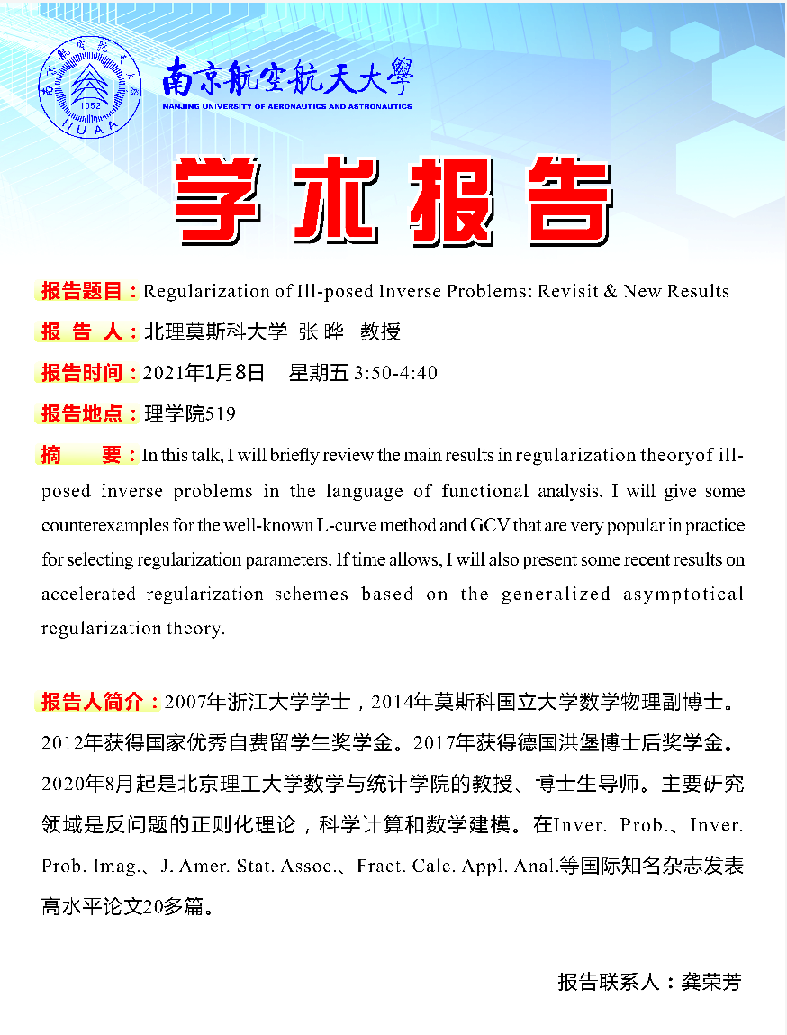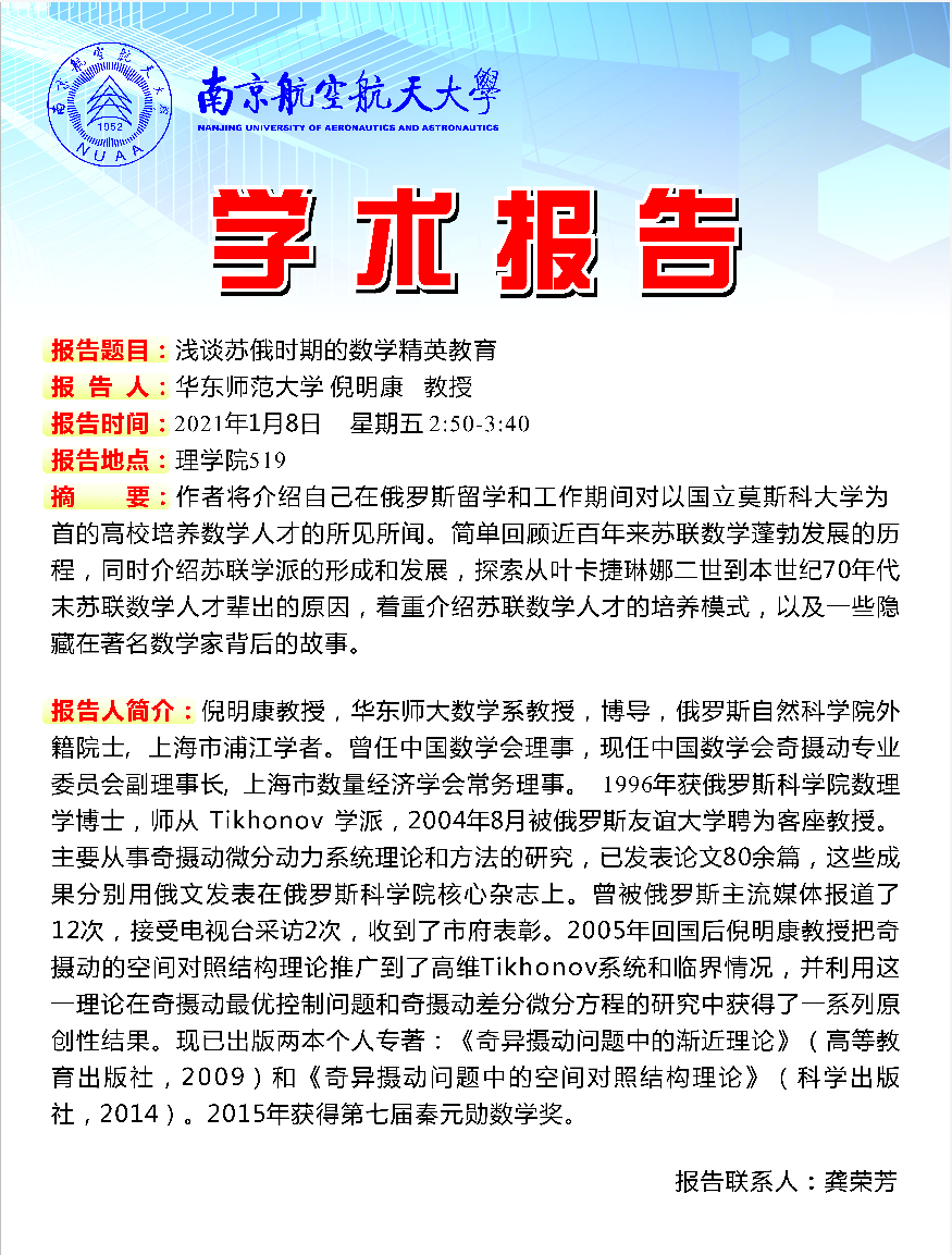 报告时间:2021年1月9日(周六)上午 10:00-11:30