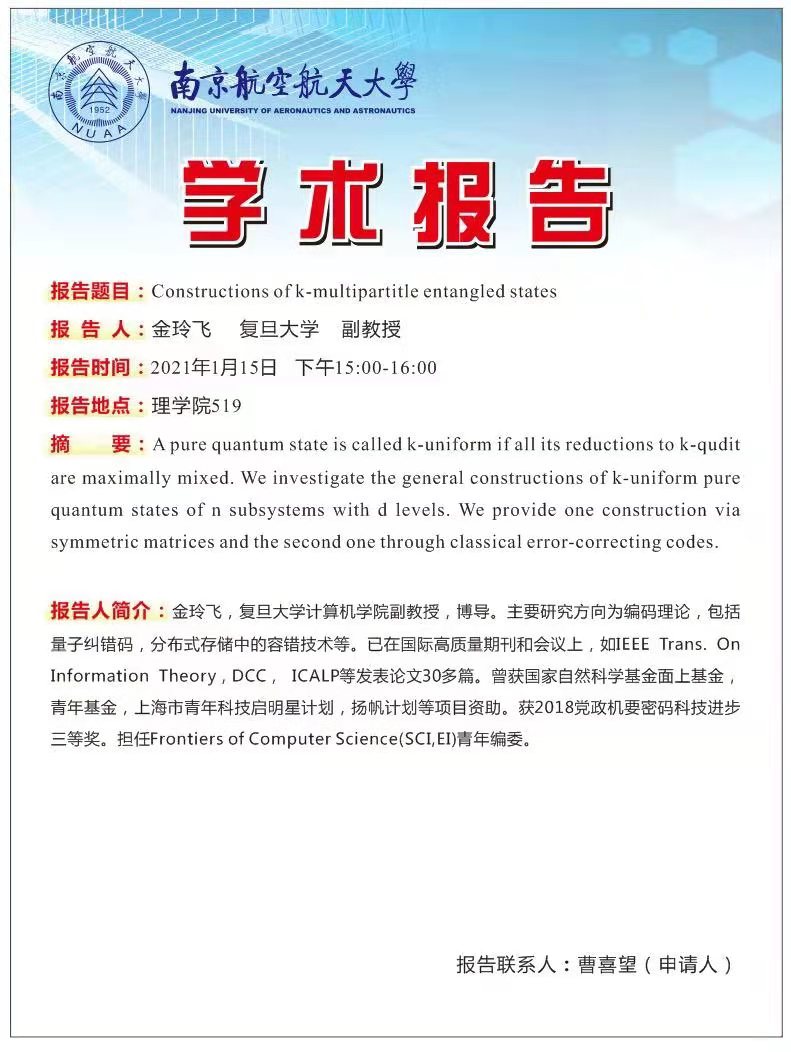 报告地点:将军路校区1号楼10527