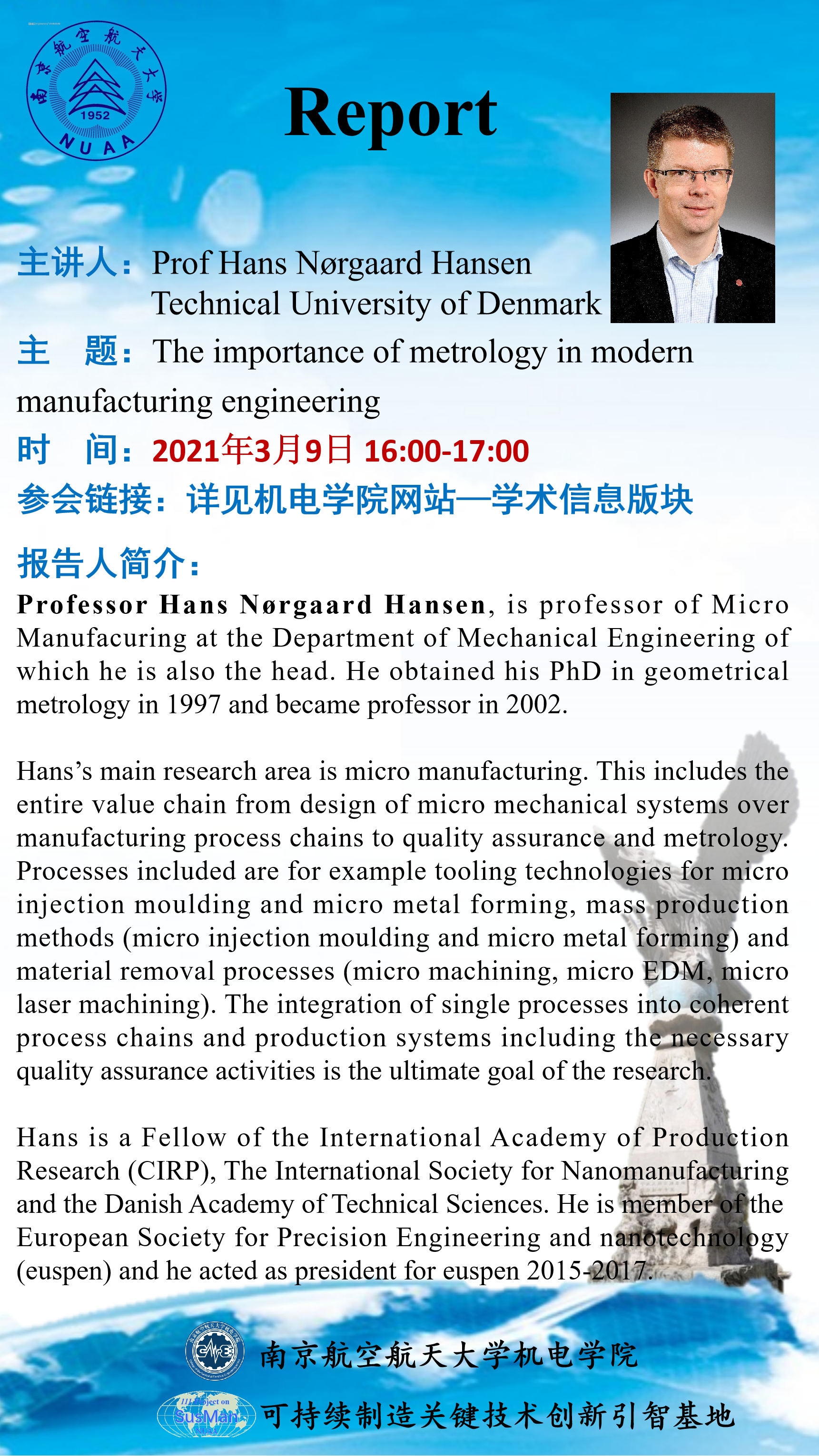 报 告 人:Prof Hans Nørgaard Hansen Technical Universi
