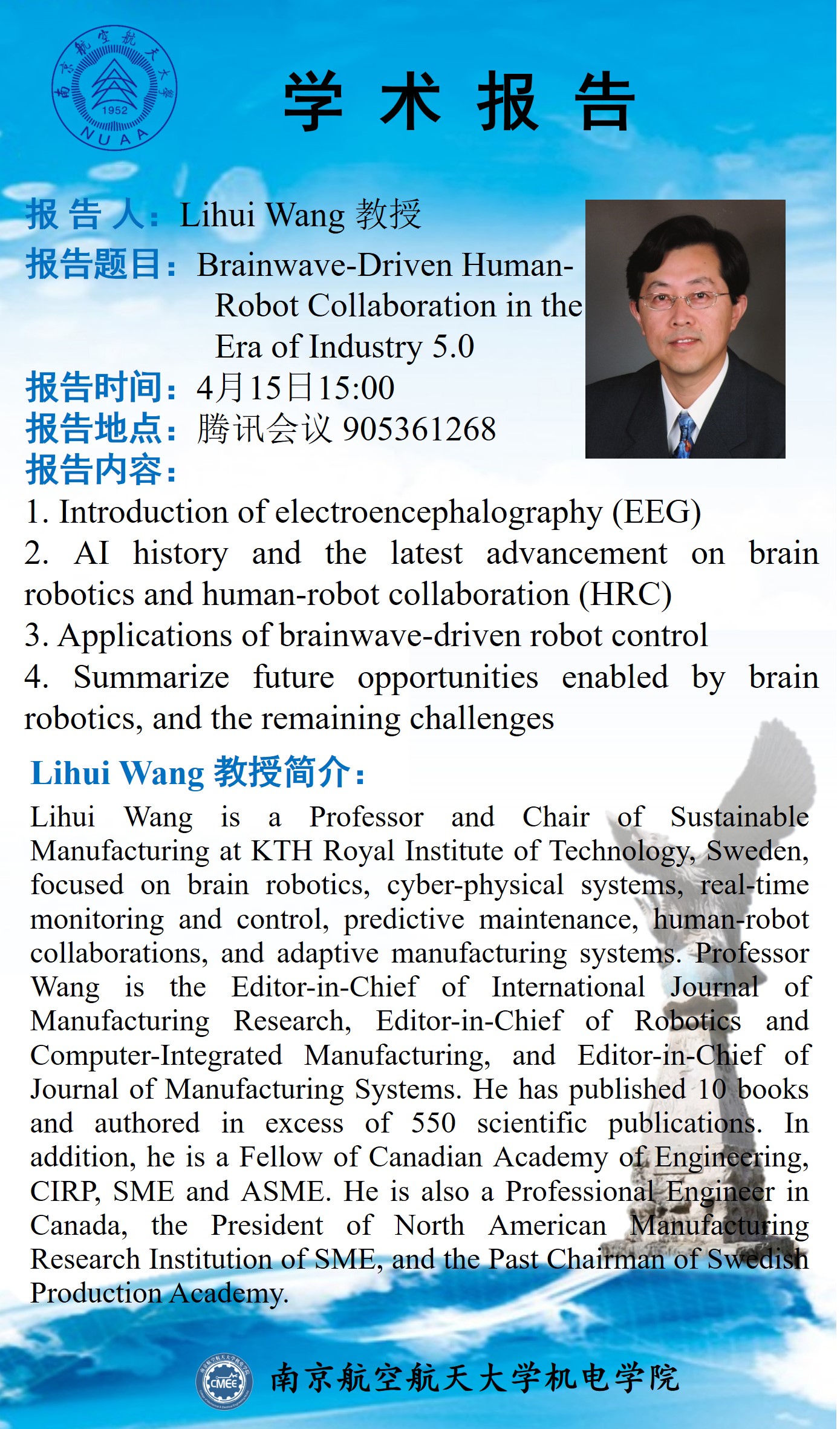 报告题目:Brainwave-Driven Human-Robot Collaboration in the Era of Industry 5.0