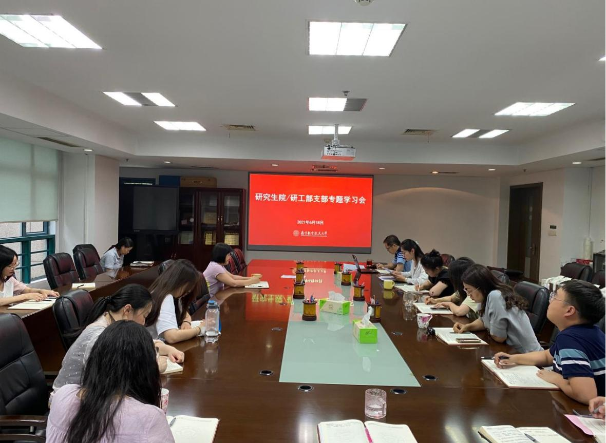 6月18日,研究生院/研工部党支部召开党员扩大会议,部门全体教职工参加,支部书记张启钱作了题为“学史力行 以行践知 激发基层党建工作新动能——学习贯彻《中国共产党党支部工作条例(试行)》”的专题党课。