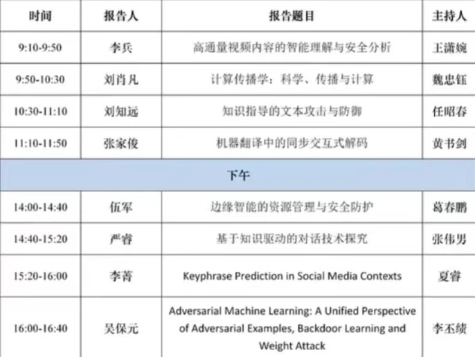 报 告 人:李兵,刘肖凡,刘知远,张家俊,伍军,严睿,李菁,吴保元