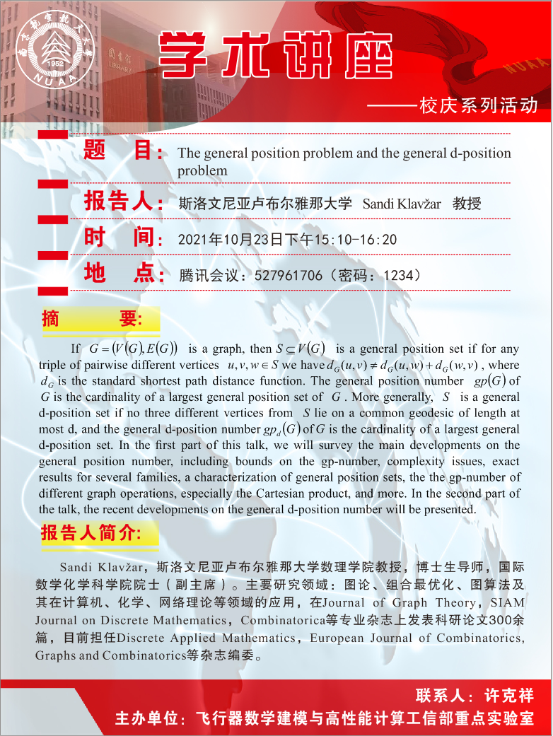 报 告 人:Sandi Klavzar 教授 (斯洛文尼亚卢布尔雅大学)
