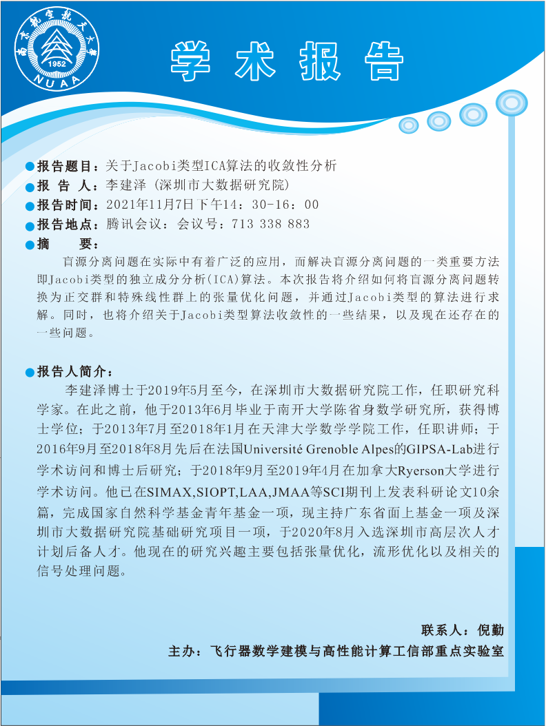 报告题目:关于Jacobi类型ICA算法的收敛性分析