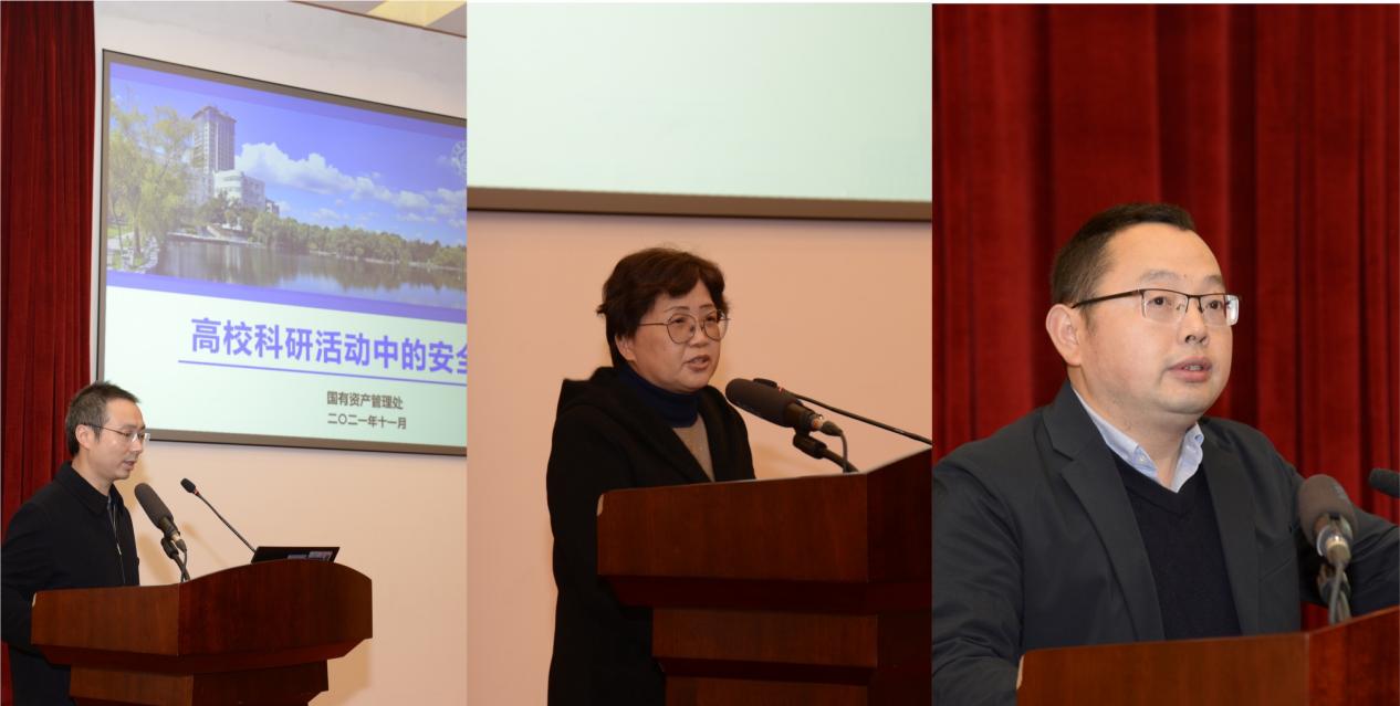 国有资产管理处副处长阎志军盘点了近年来国内高校实验室安全典型事故,深入分析了事故产生的原因。他明确了实验室安全监管要求,在普及安全知识的同时多次强调实验室安全是教育事业不断发展、学生成长成才的基本保障。实验室安全直接关系到广大师生的生命财产安全,关系到学校和社会的安全稳定。他指出,师生安全观念要从“要我安全”转变到“我要安全”上来,安全意识要入脑入心。