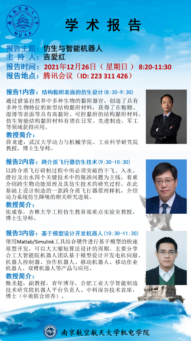 报告人:薛龙建 教授(武汉大学)/张春成 教授(吉林大学)/甄圣超 副教授(合肥工业大学)