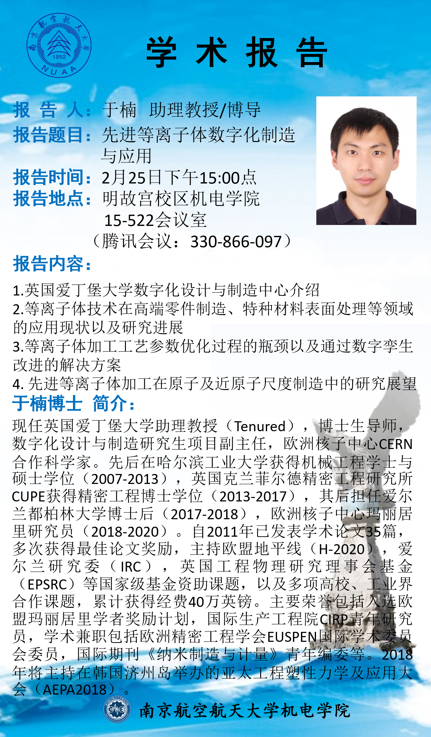 报告地点:明故宫校区A15-522会议室(腾讯会议:330-866-097)