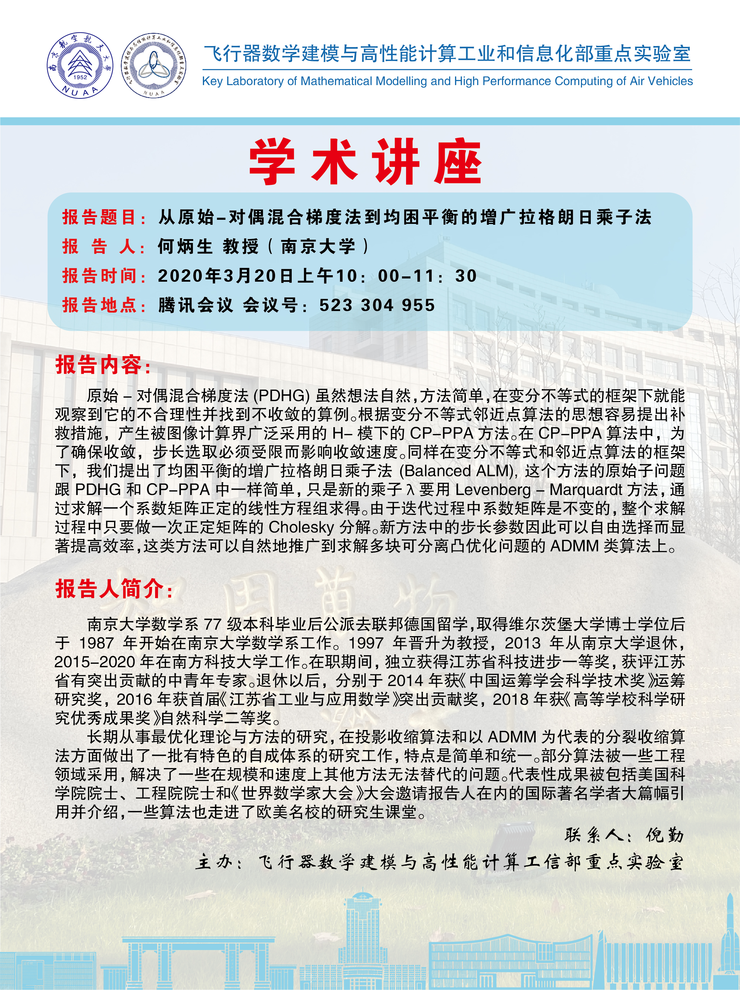 报 告 人:何炳生 教授(南京大学)