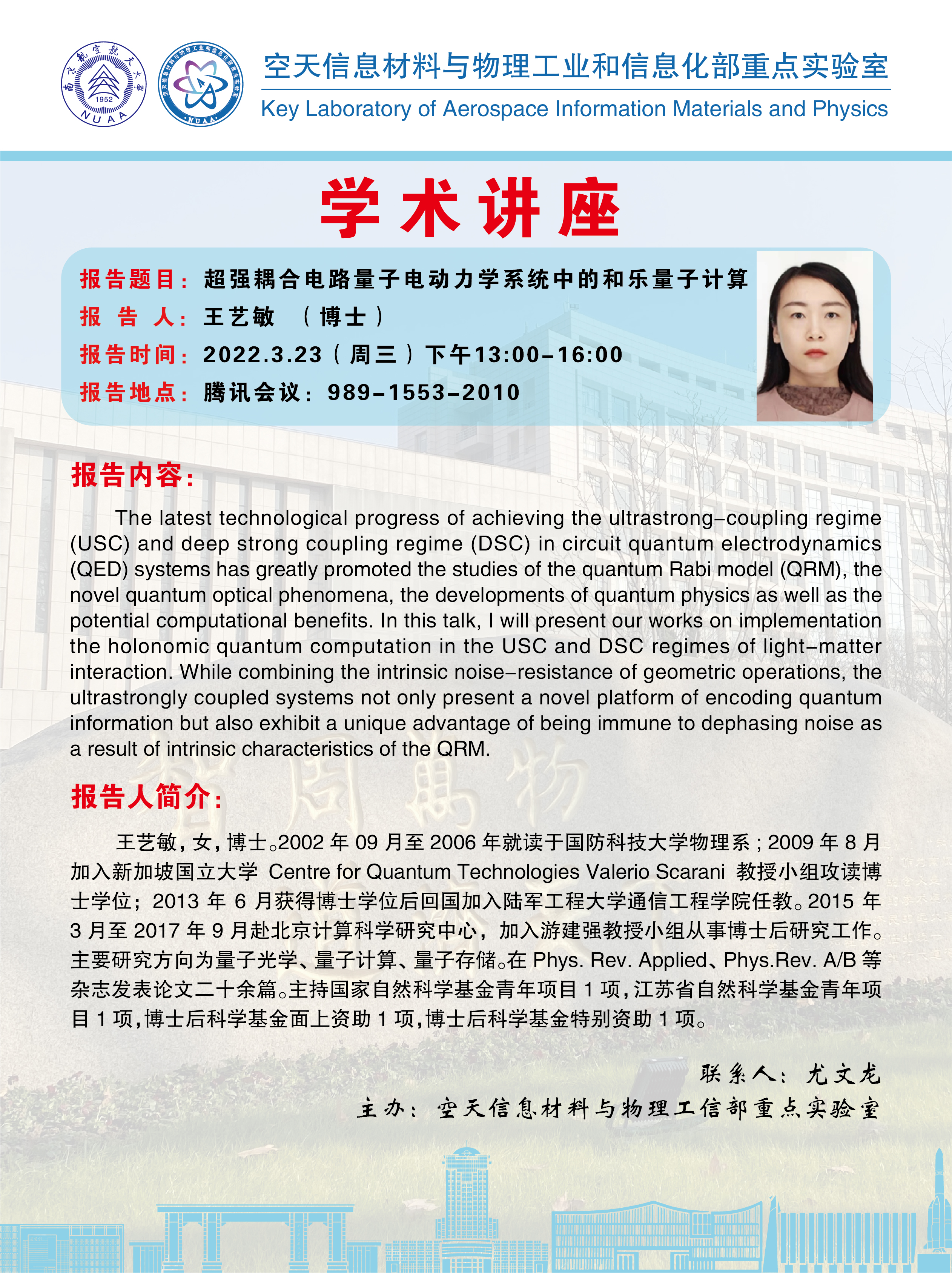 报告题目:超强耦合电路量子电动力学系统中的和乐量子计算