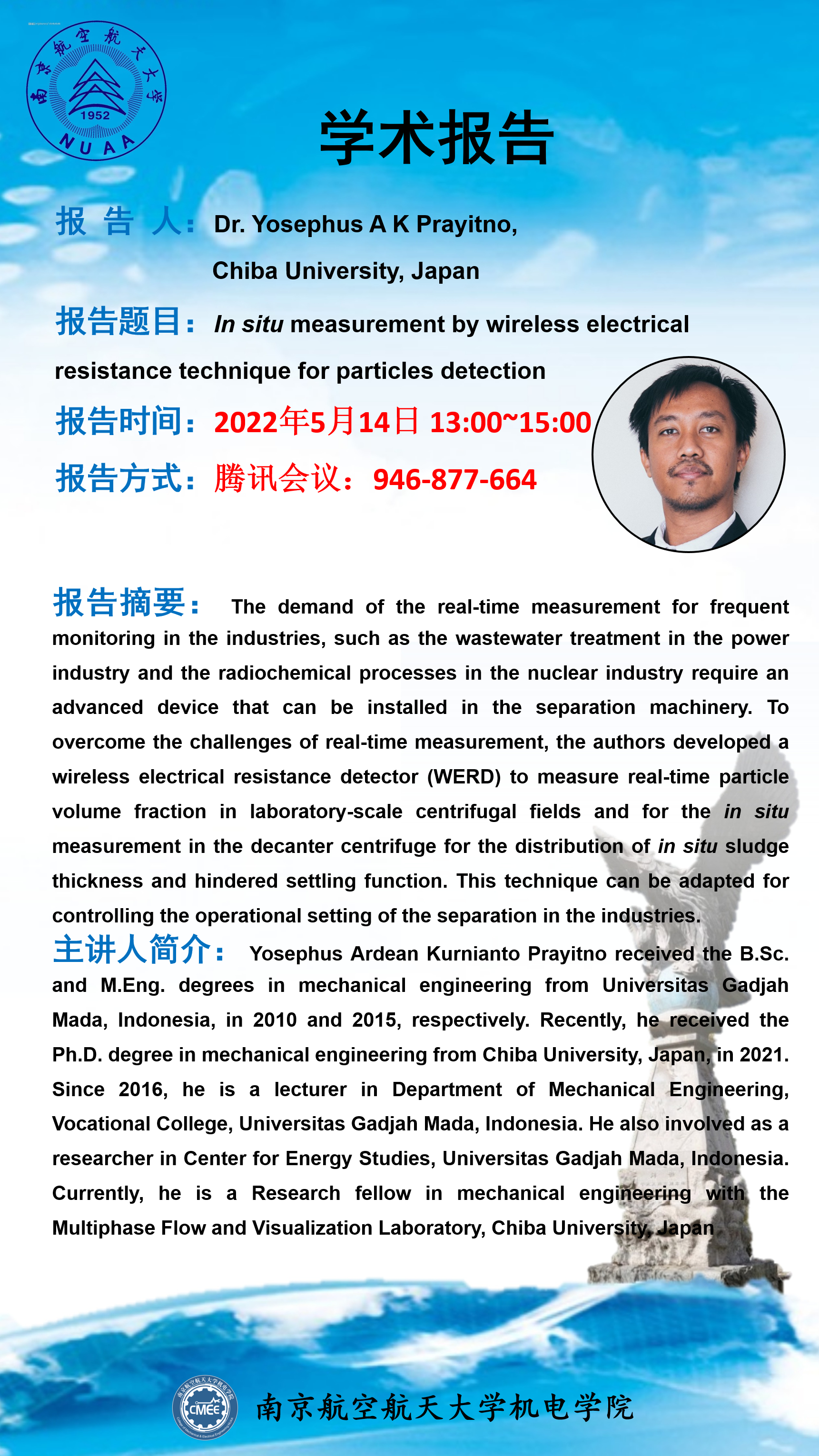 报告题目:In situ measurement by wireless electrical resistance technique for particles detecion