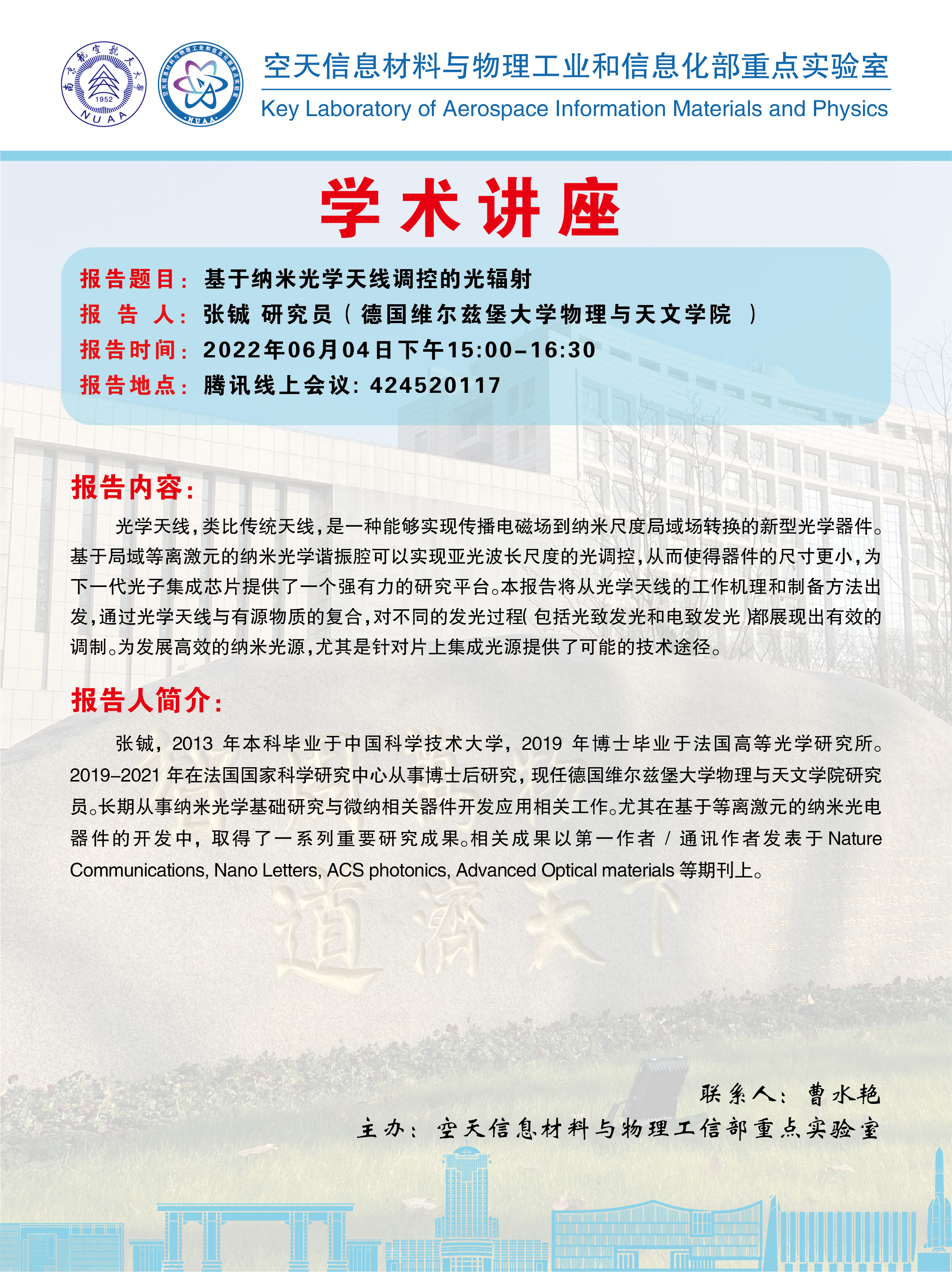报告地点:线上(腾讯会议:777 438 565)