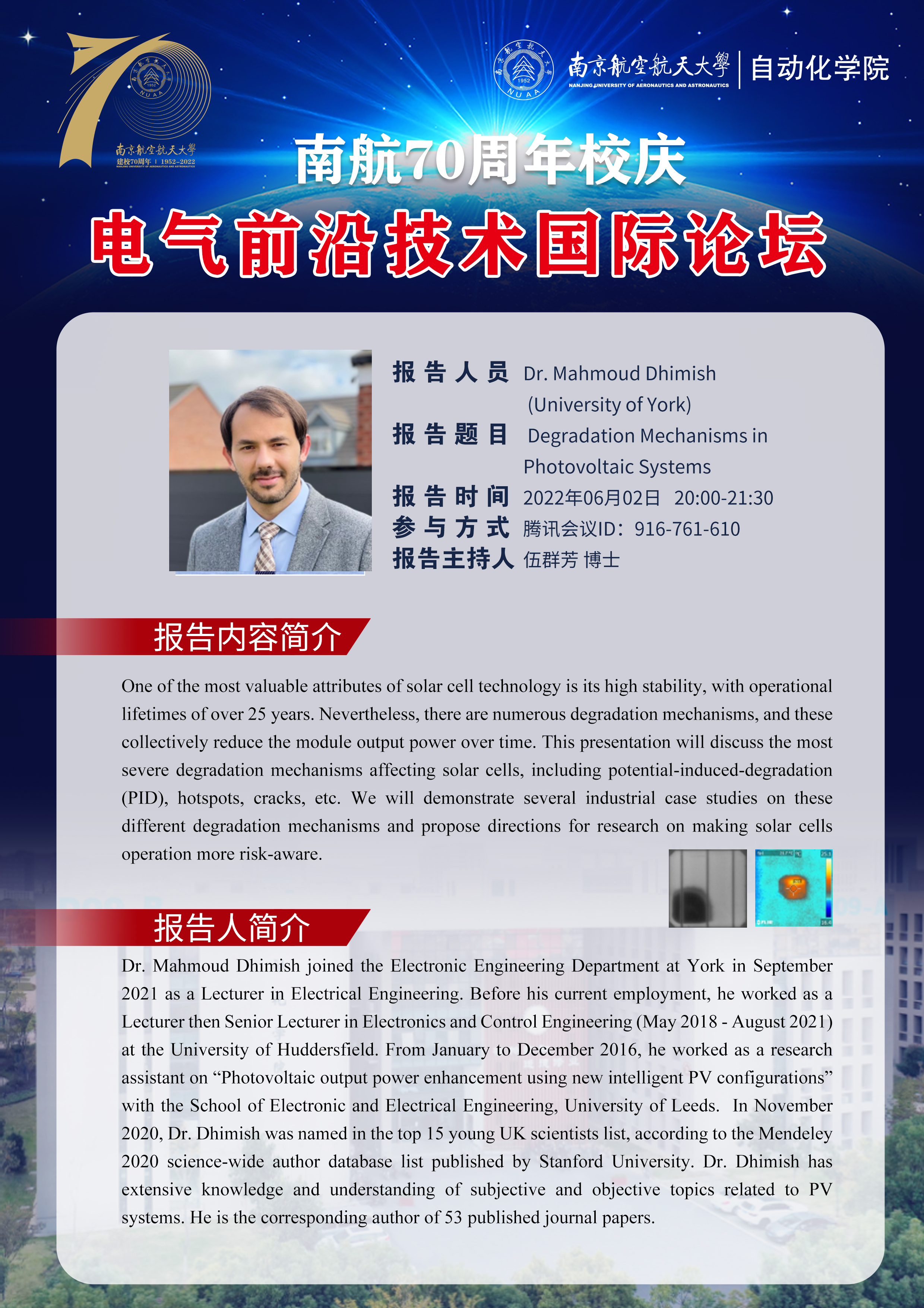报告人:Dr Mahmoud Dhimish(University of York)