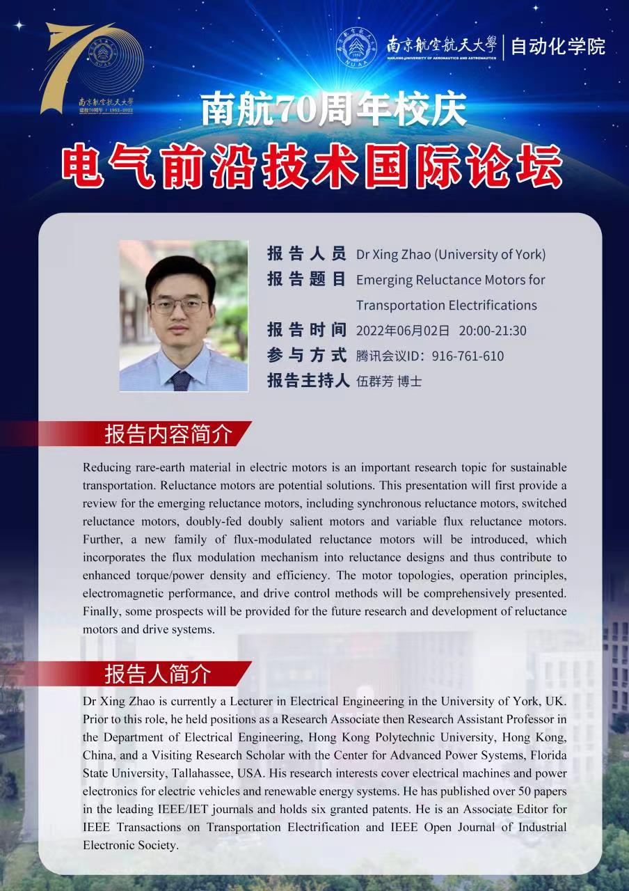 报告题目:Emerging Reluctance Motors for Transportation Electrifications