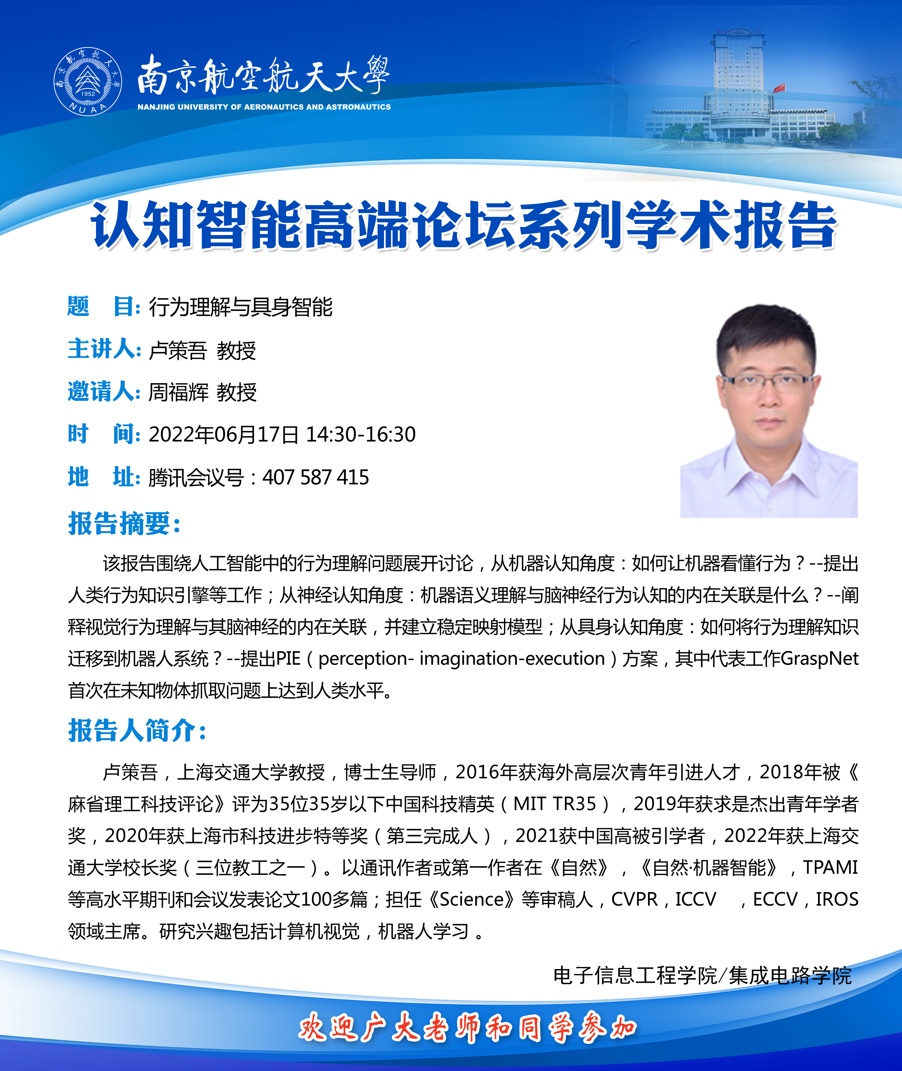 主办单位:智能装备动力学中心、机械结构力学及控制国家重点实验室、航空学院