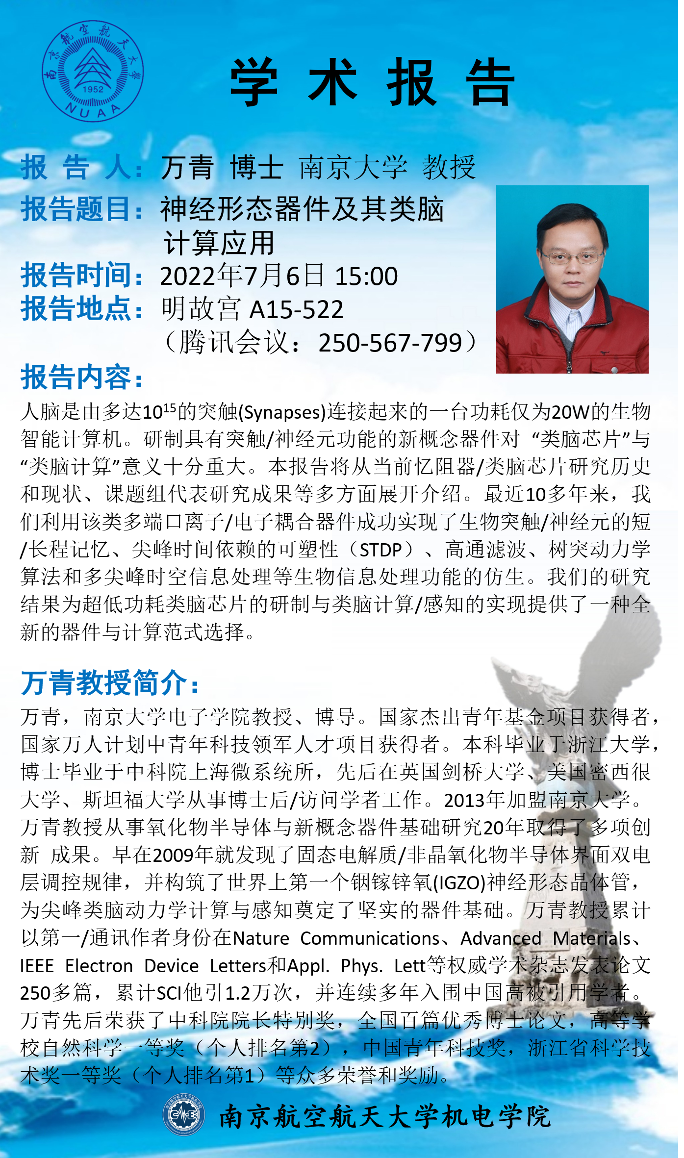 报告人:万青 教授(南京大学)