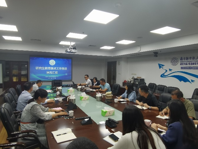 研究生院常务副院长徐正扬介绍了学位与研究生教育情况,重点汇报了部门承担的学校年度重点工作进展情况。研工部部长宋凯从部门廉政风险防控、贯彻“清廉南航”建设意见、落实职能监管等方面进行了汇报。