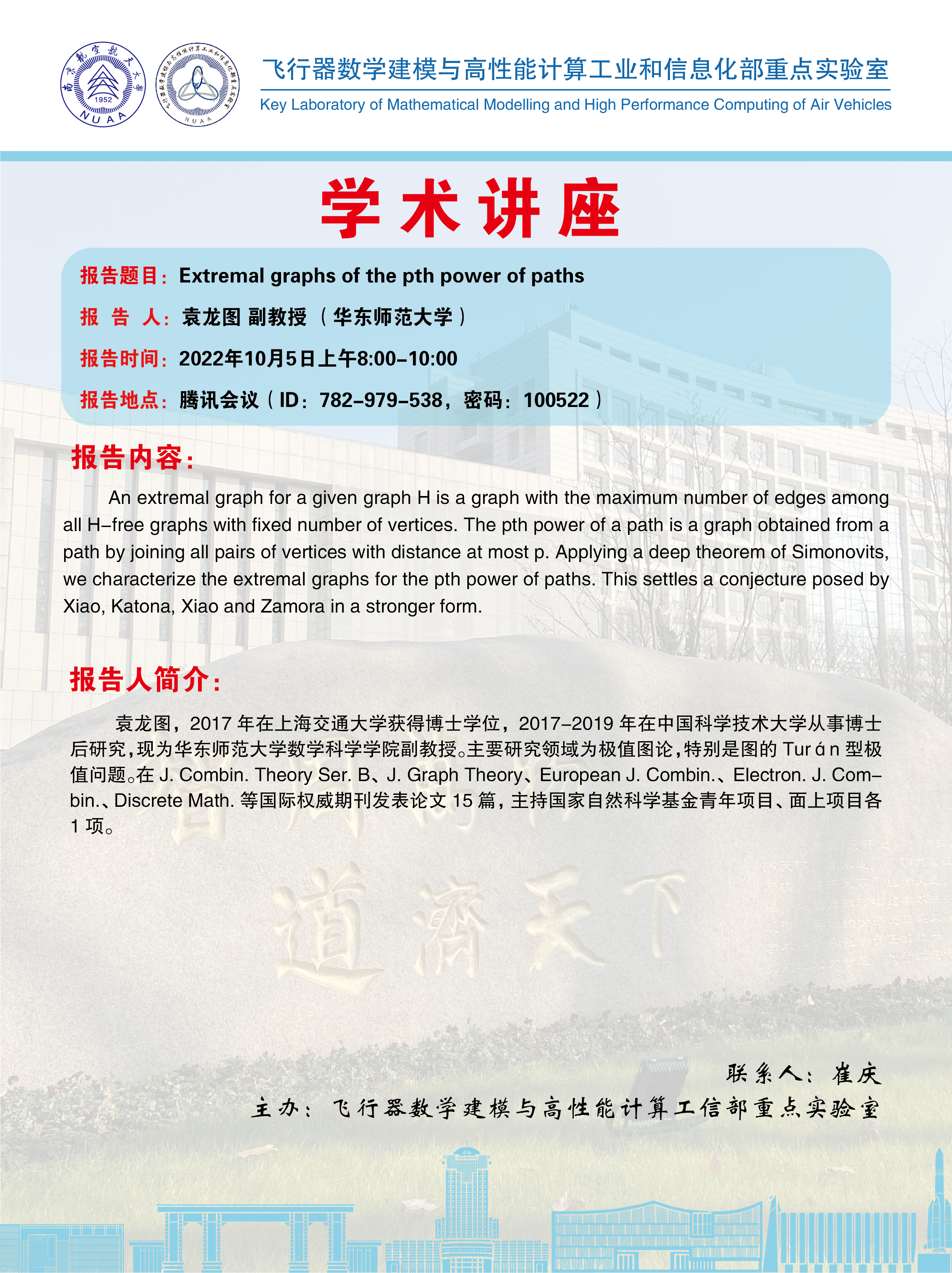 报告题目:Extremal graphs of the pth power of paths