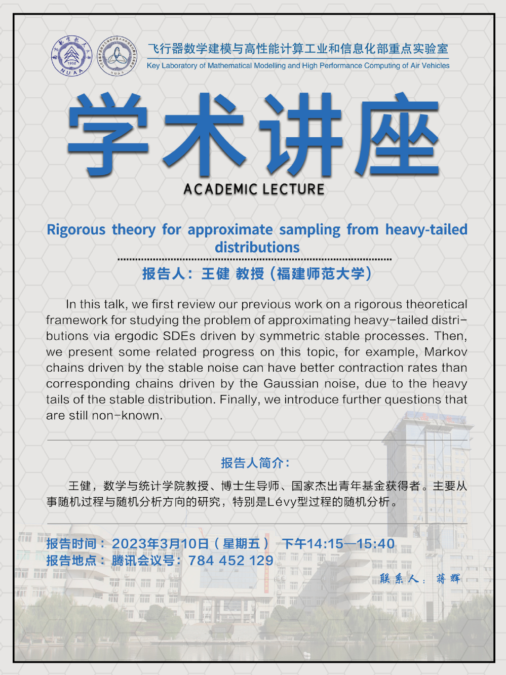 报告题目:Rigorous theory for approximate sampling from heavy-tailed distributions