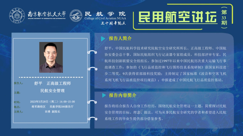 报告地点:将军路校区民航楼306报告厅