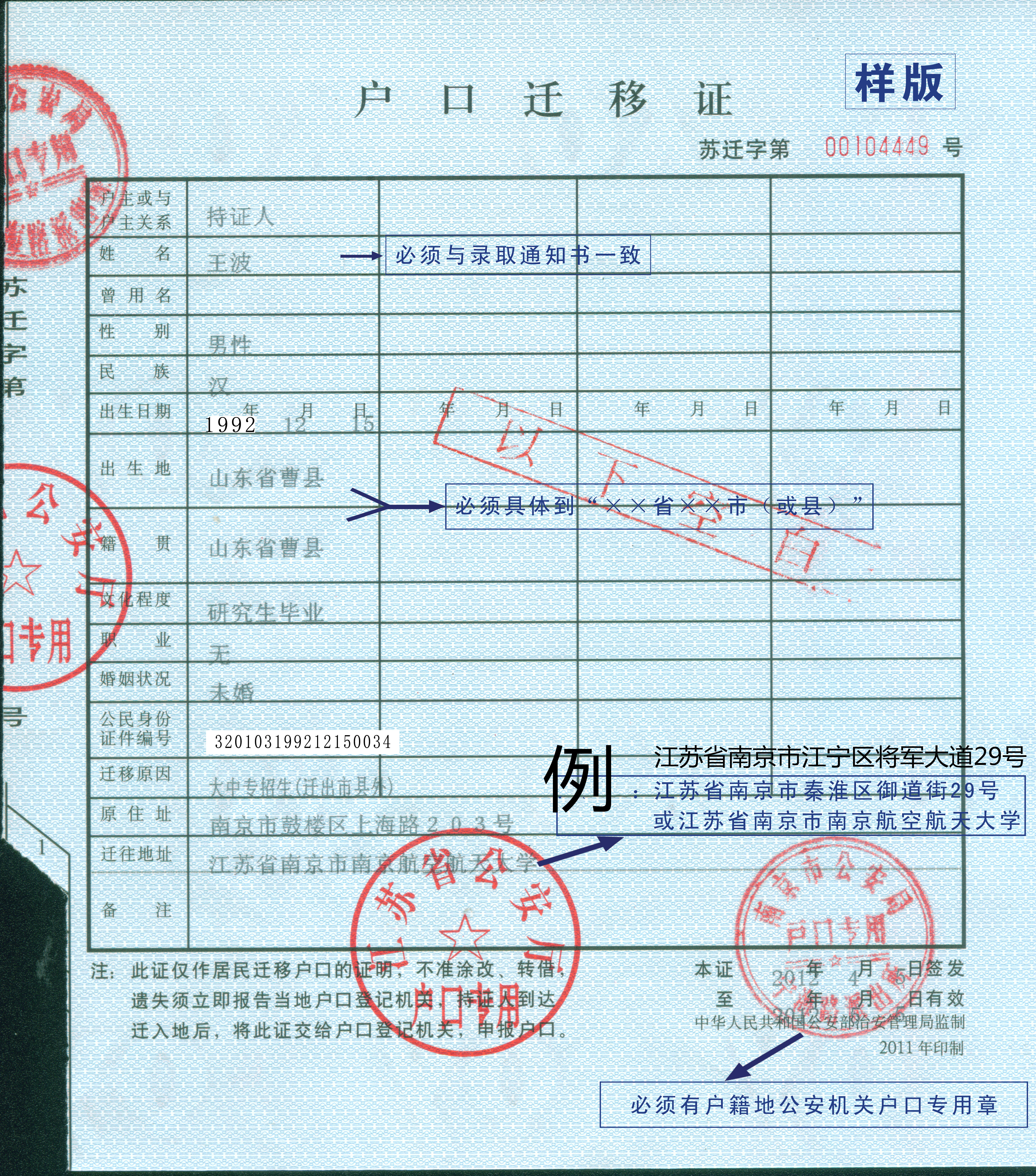 (2)迁移地址:(航空学院、能源与动力学院、机电学院新生落户明故宫校区,其余学院新生落户将军路校区)