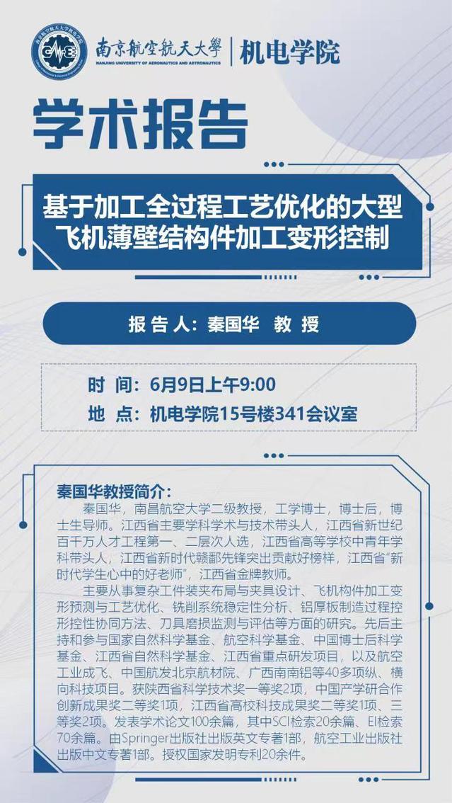 报告题目:基于加工全过程工艺优化的大型飞机薄壁件加工变形控制