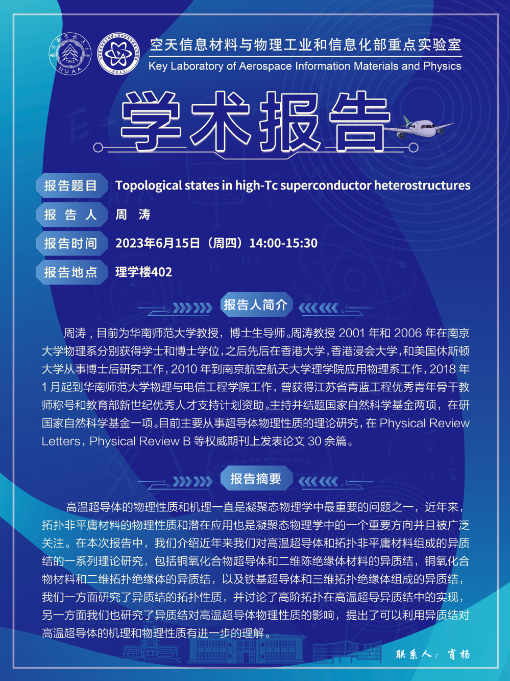 报告题目:Topological states in high-Tc superconductor heterostructures