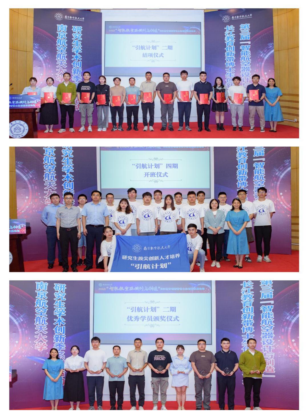 开幕式上举行了南航研究生拔尖创新人才培养“引航计划”二期结业仪式和四期开班仪式。王英为二期结业博士生颁发了“引航之星”证书,并为9名二期结业考核优秀博士生代表颁发了奖杯。王亚彤为第四期“引航计划”班同学授予了班旗。