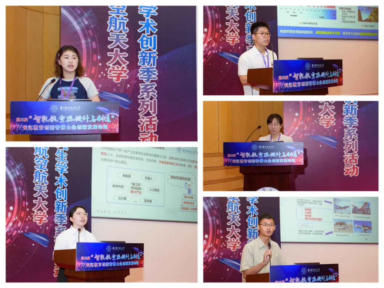 随后,来自南京大学、东南大学、南京理工大学、南京航空航天大学等高校的5位优秀博士生代表做了大会报告,围绕大系统多学科综合设计优化、新型航空动力与绿色能源、先进航空材料/结构加工制造、智能安全飞行与控制等方向,与参会研究生分享了他们的最新科研进展与创新历程。