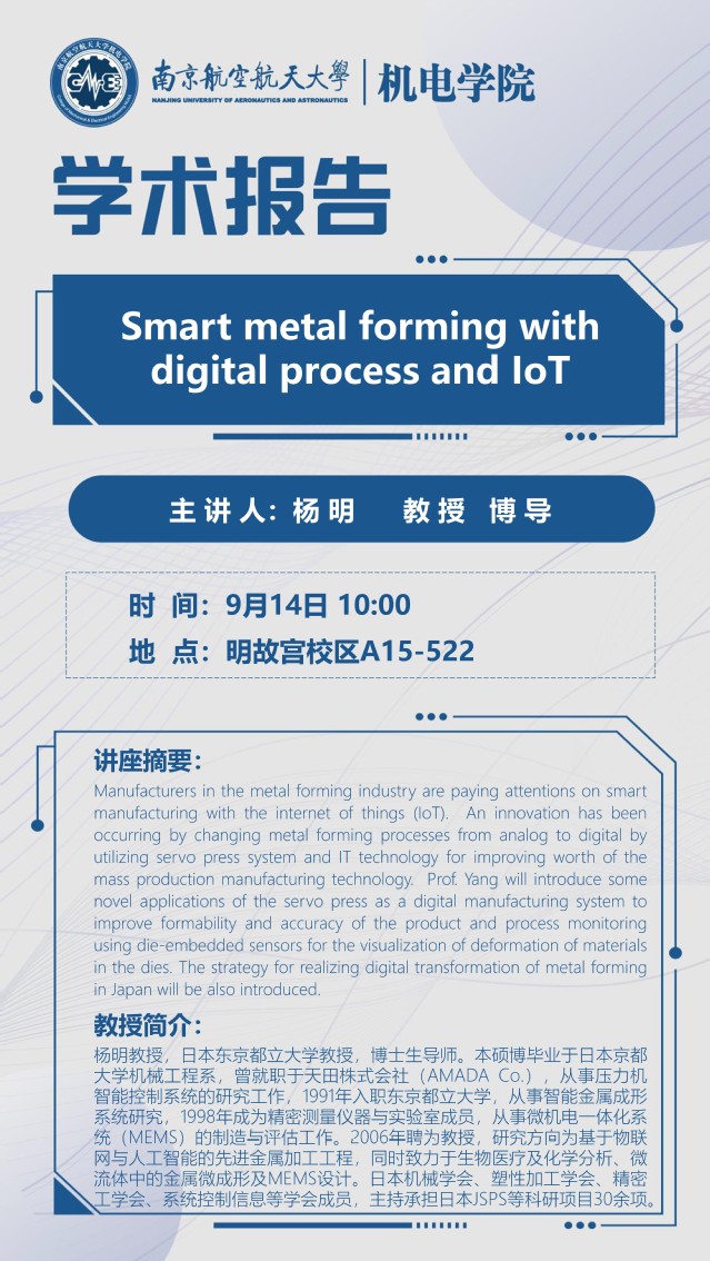 报告题目:Smart metal forming with digital process and IoT