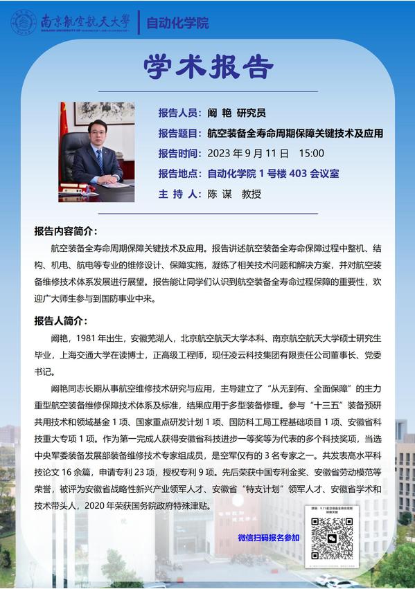 报告主题:航空装备全寿命周期保障关键技术及应用