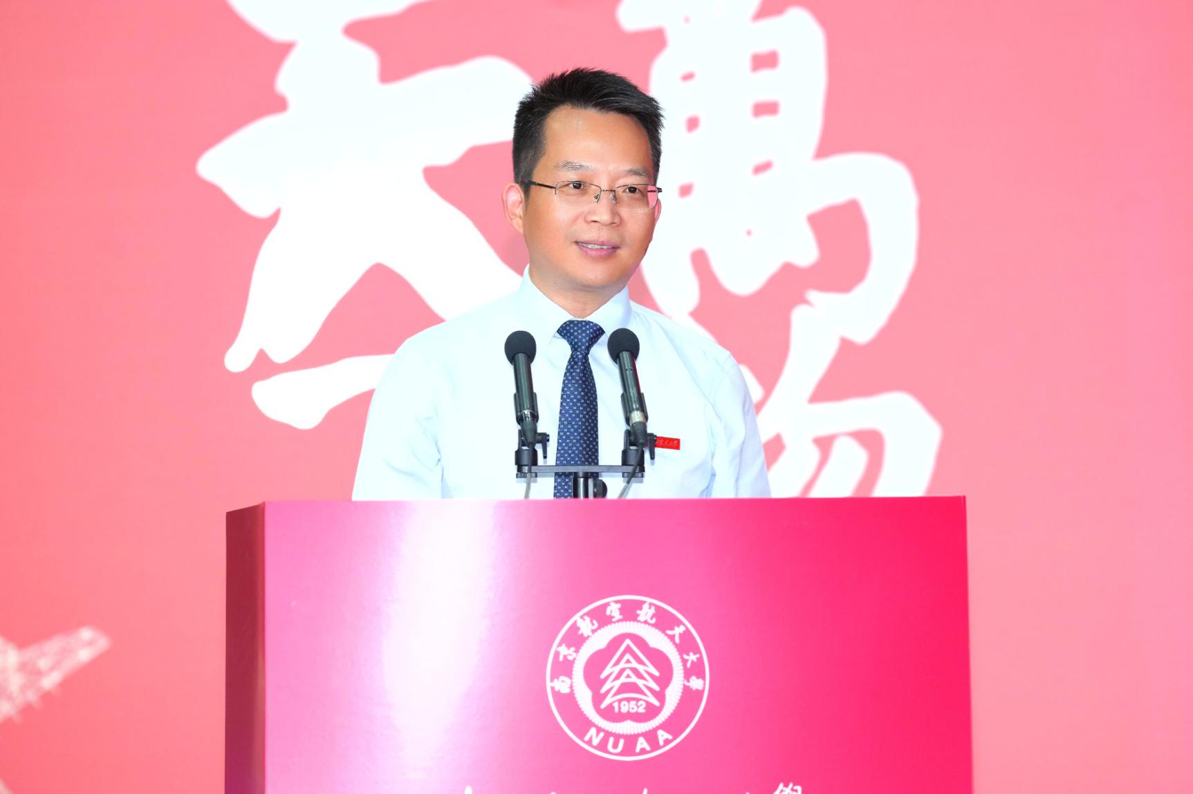 江苏青年五四奖章获得者、航空学院邱雷教授作为导师代表发言,他结合自身的求学经历,勉励各位研究生勤于思考,敢于创新,潜心向学,把个人发展目标同国家科技发展的战略目标紧密结合,实现真正的自我价值。