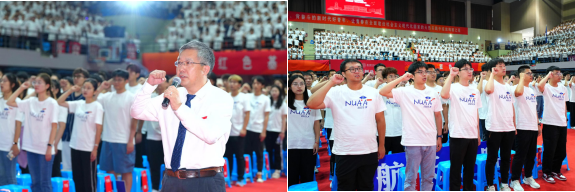 9月5日上午,2023级研究生开学典礼在将军路校区东区体育馆举行。全体校领导、党委常委、校长助理、相关职能部门主要负责同志、各学院领导班子成员、导师代表、研究生辅导员和2023级研究生新生参加了本次典礼。中国航空工业集团有限公司中国直升机设计研究所党委书记、我校1989级本科、2002级硕士、2008级博士校友黄文俊应邀参加典礼。开学典礼由校党委副书记刘宇雷主持。