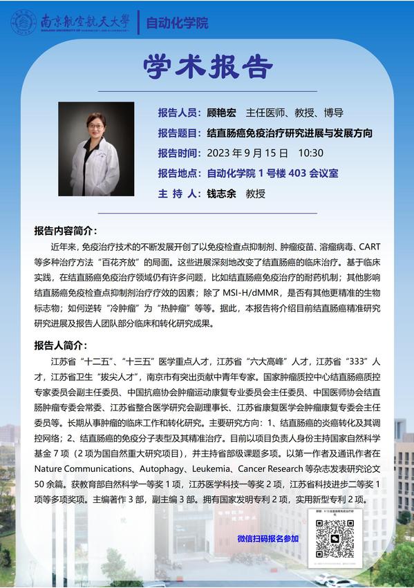 报告主题:结直肠癌免疫治疗研究进展与发展方向