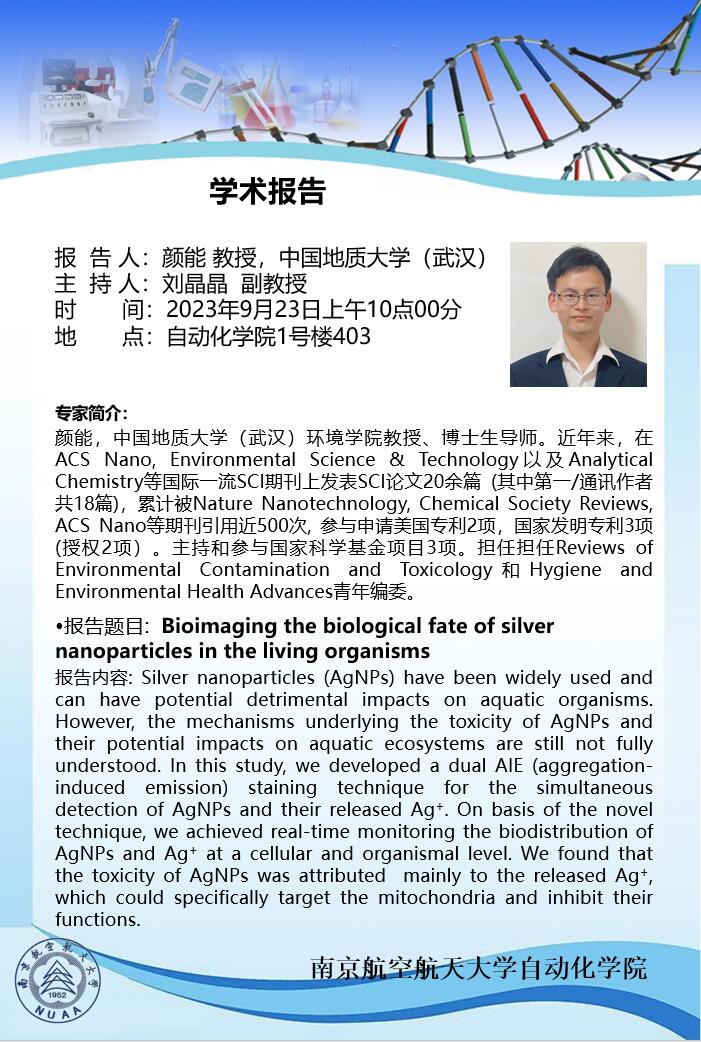 报告主题:Bioimaging the biological fate of silver nanoparticles in the living organisms